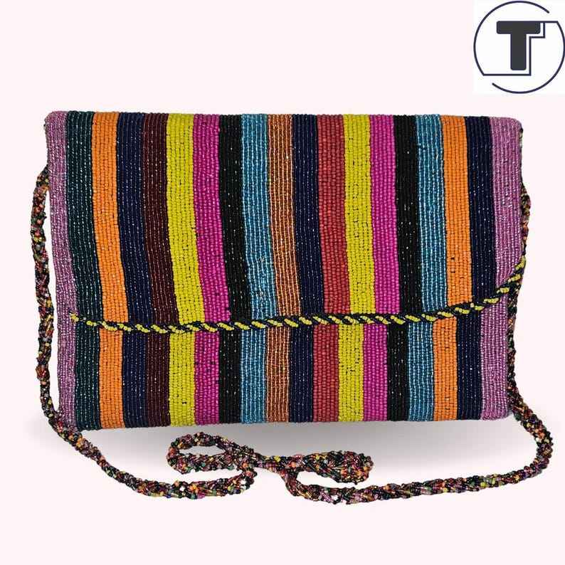 Sac à perles multicolores avec poignée, sac à main, sac à main décontracté, artisanat indien, fait à la main, sac baguette,