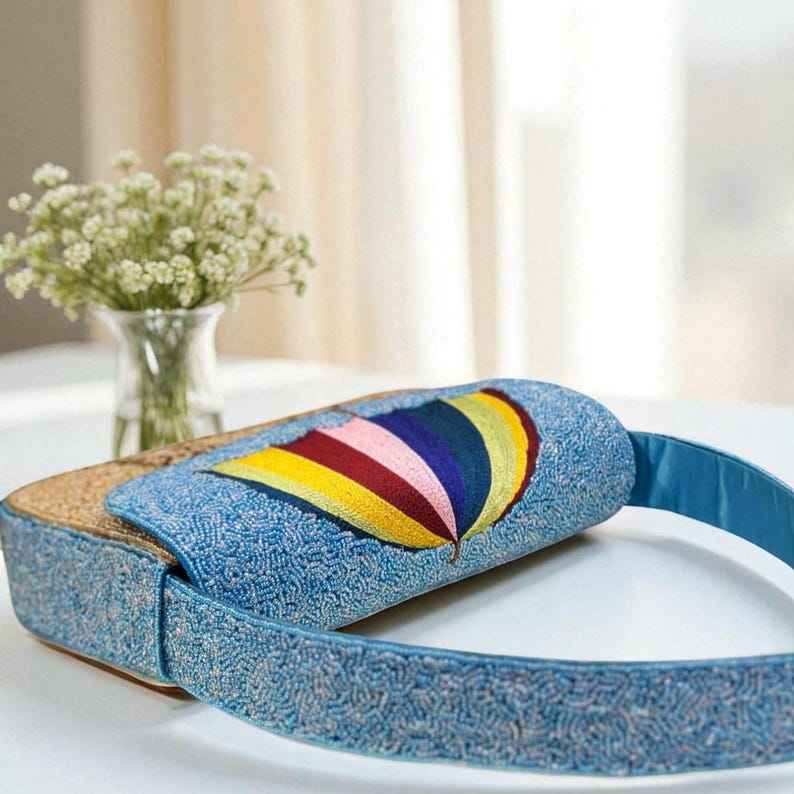 Sac à perles multicolores avec poignée, sac à main, sac à main décontracté, artisanat indien, fait à la main, sac baguette,