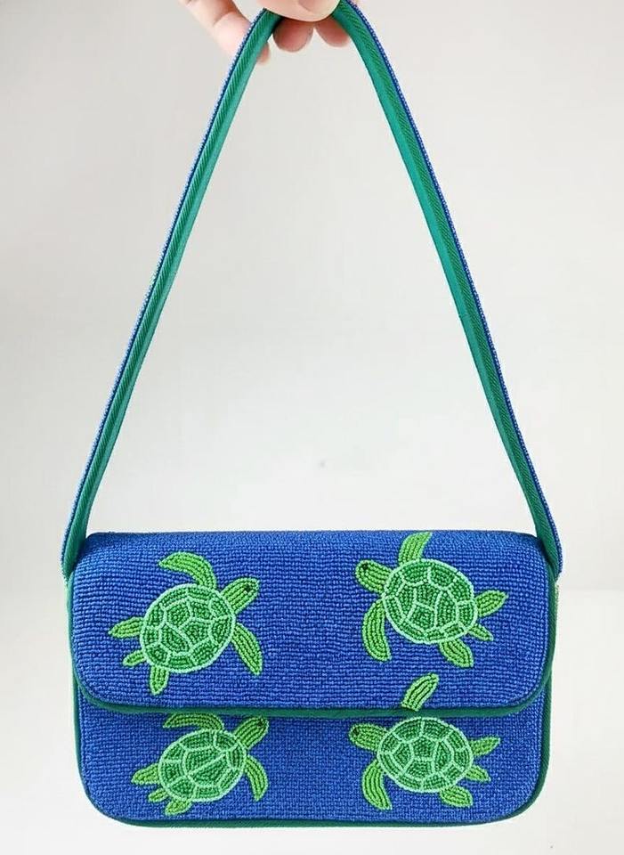 Sac à bandoulière en toile brodé bohème multicolore avec perles, sac de shopping perlé