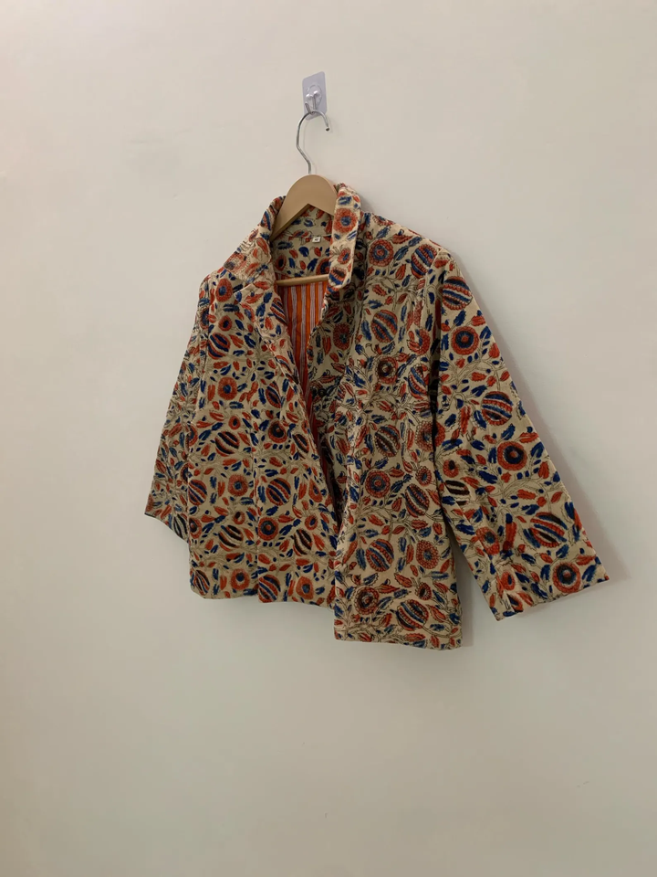 Veste courte à un bouton en velours côtelé multicolore Style bohème Veste courte à cordon Bomber Manteau court en velours côtelé Manteau en daim Taille unique