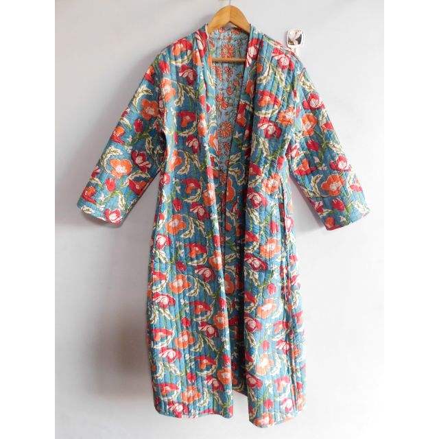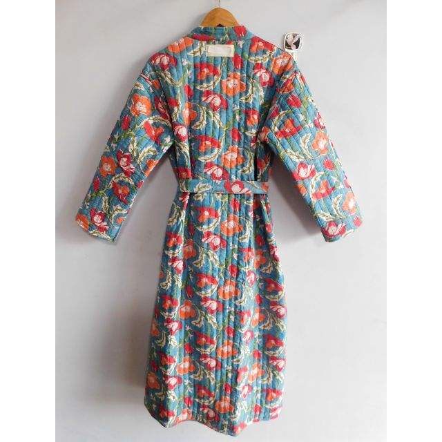 Peignoir de bain matelassé en coton multicolore Kimono Robe indienne faite à la main avec imprimé floral Veste pour femmes pour l'été Printemps Chaud Hiver