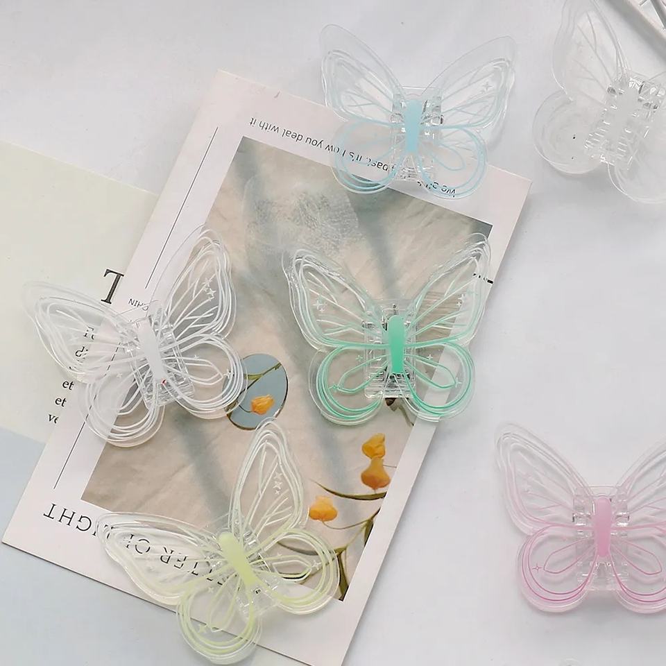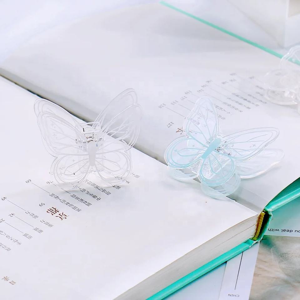 Pince à papier multicolore en plastique motif papillon mignon, pour agenda, fournitures de bureau décoratives, papeterie scolaire