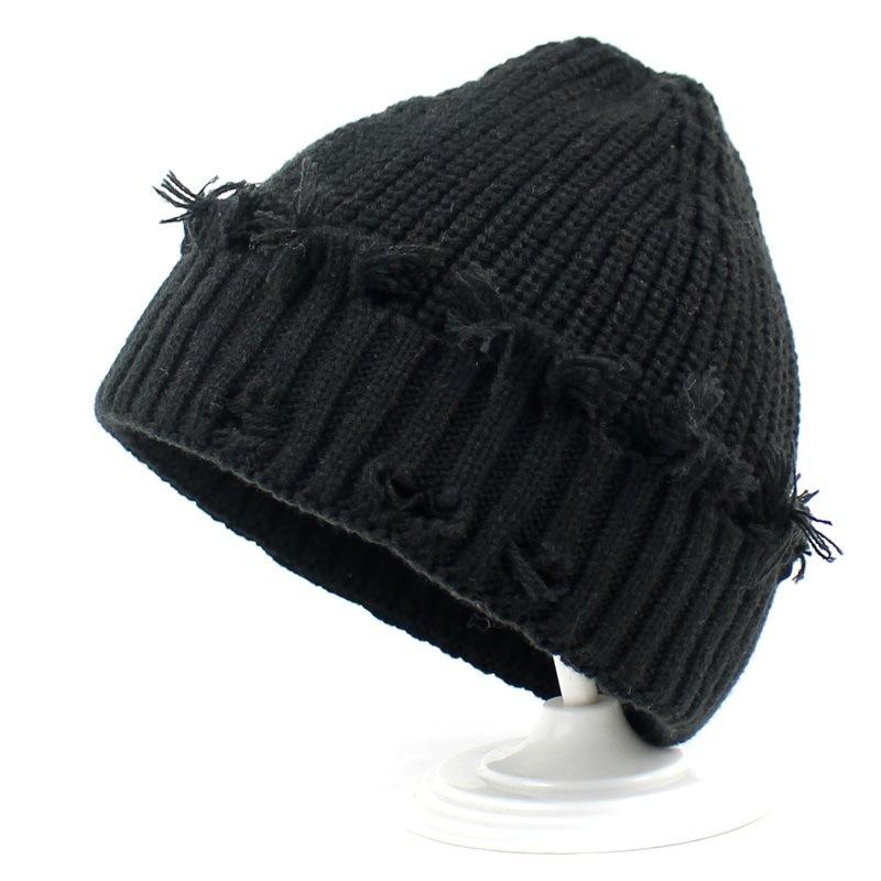 Bonnet en tricot multicolore délavé avec bordure côtelée, broderie 3D, design vintage déchiré, trous, couleurs personnalisées pour femmes et hommes, motif de dessin animé