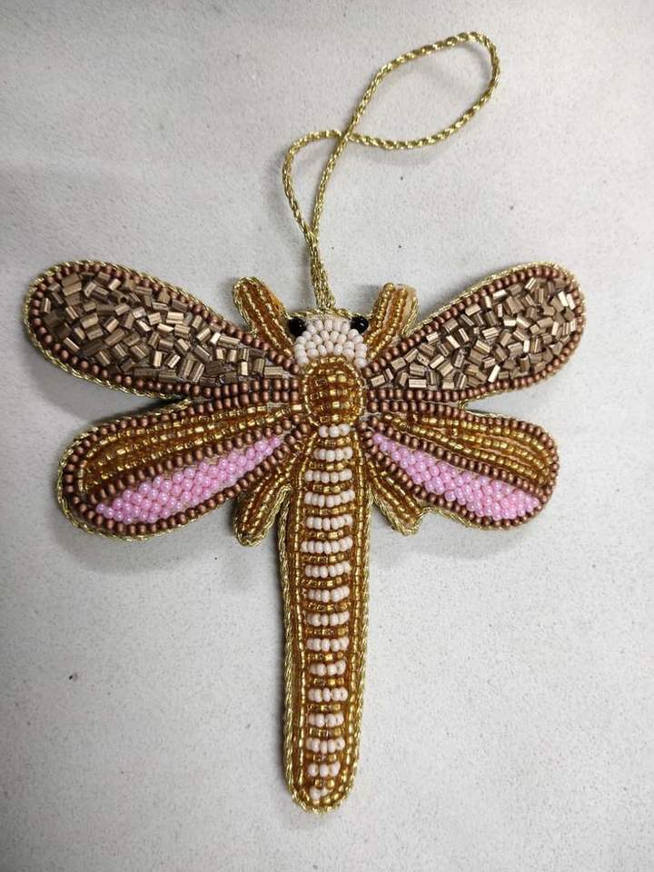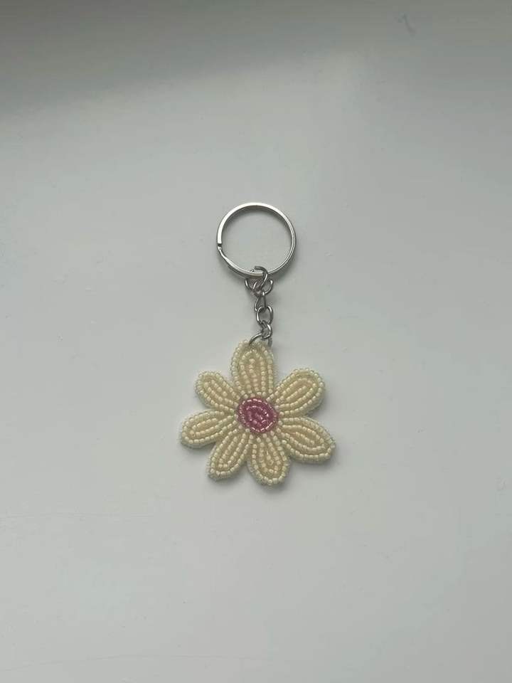 Porte-clés brodé multicolore avec perles à la main