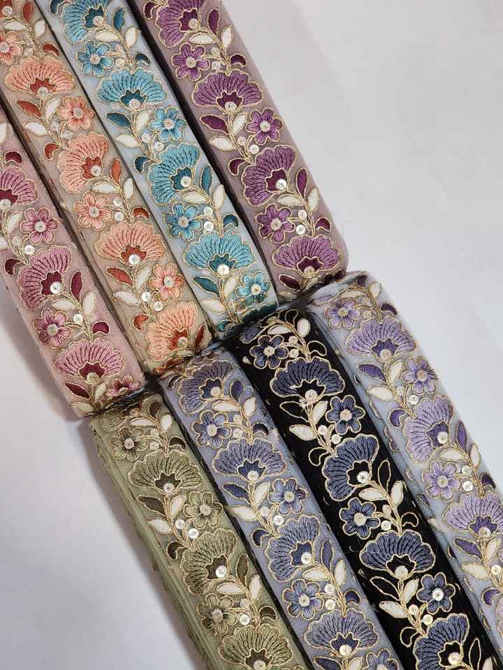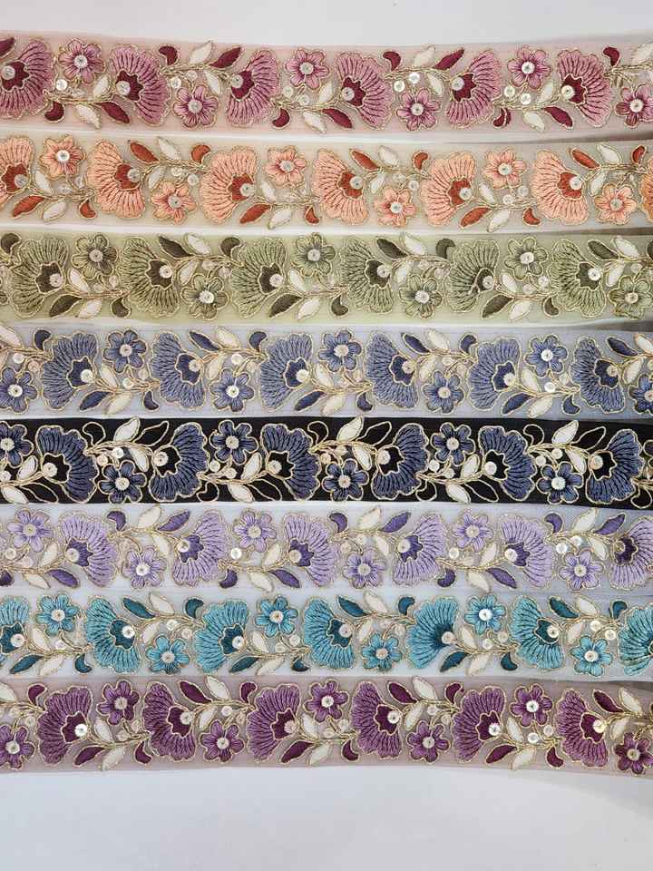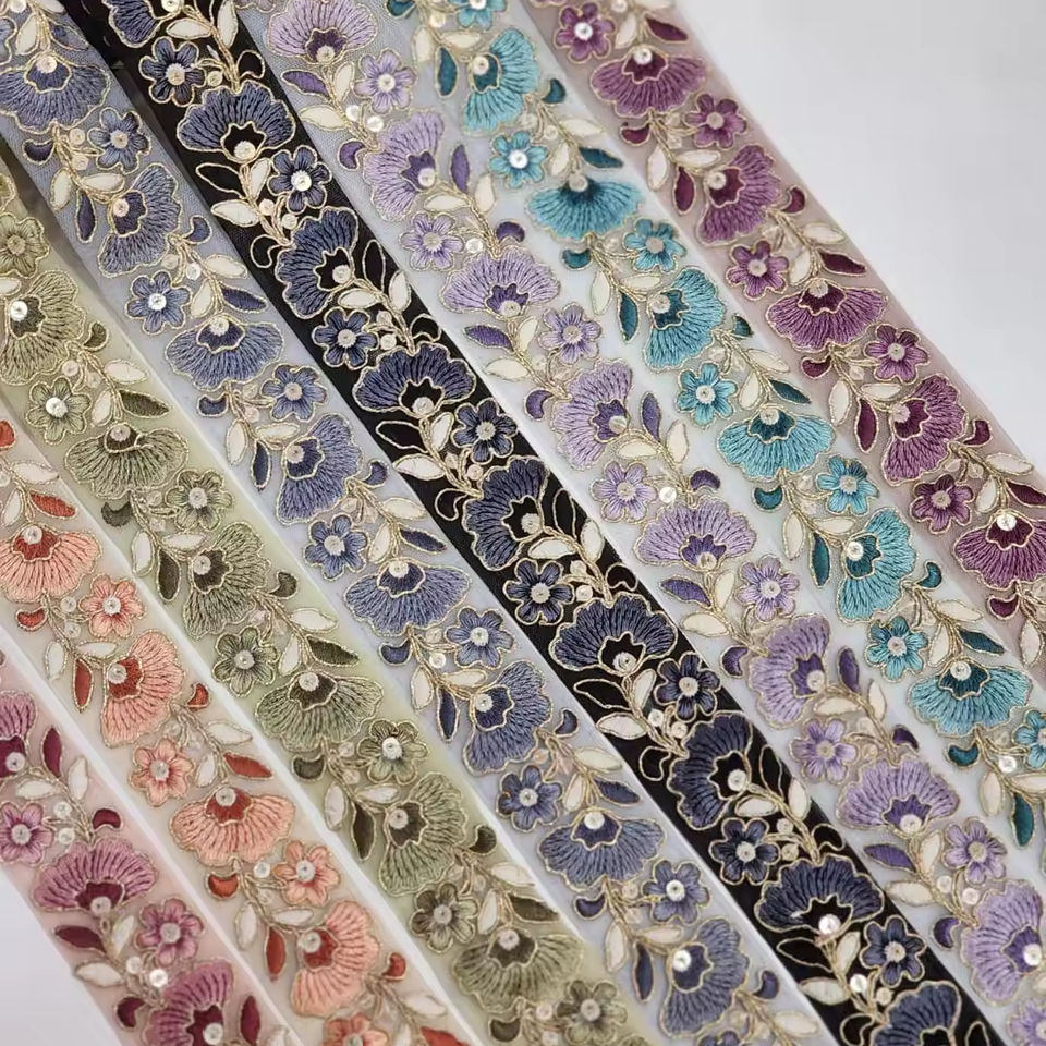 Dentelle de fleurs brodées multicolores, accessoires de robe de mariée, dentelle de modification de bordure blanche Designs et couleurs personnalisés
