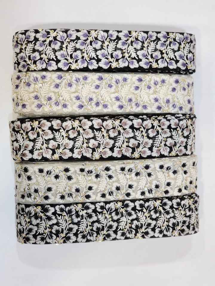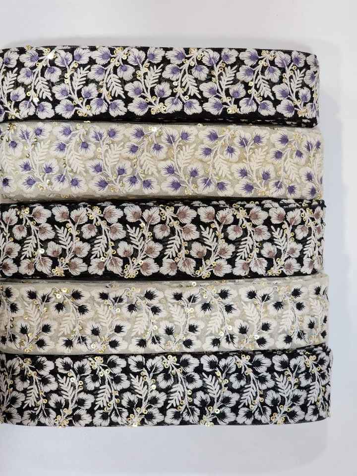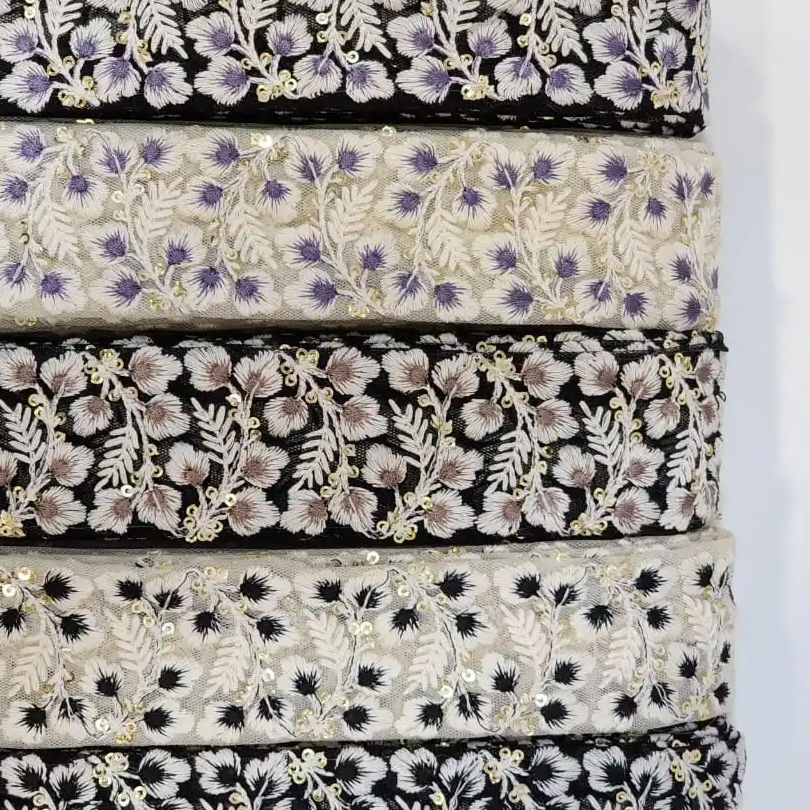 Dentelle de fleurs brodées multicolores, accessoires de robe de mariée, dentelle de modification de bordure blanche Designs et couleurs personnalisés