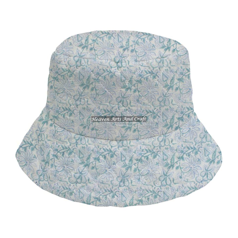 Chapeau bob matelassé en coton imprimé à la main multicolore, motif floral ajouré, fait main, artistique, pour femme