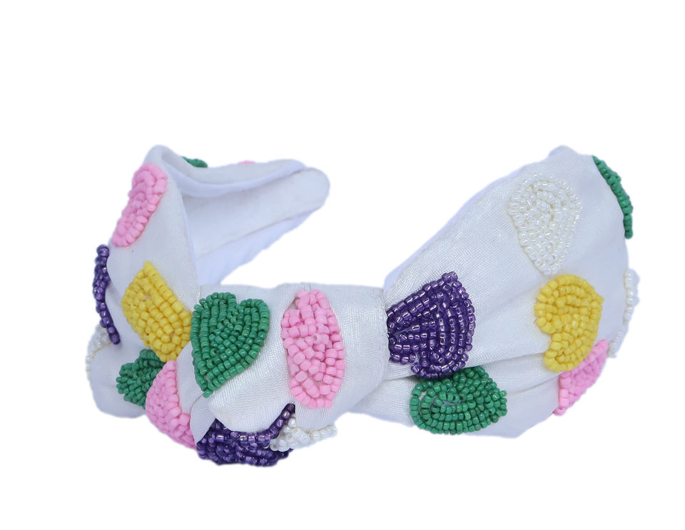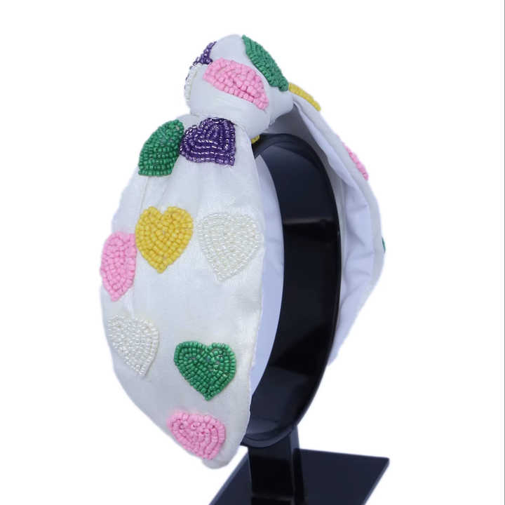 Bandeau à nœuds fait main en perles multicolores en forme de cœur, accessoire pour cheveux en tissu blanc brodé pour femmes et filles, vente en gros personnalisée