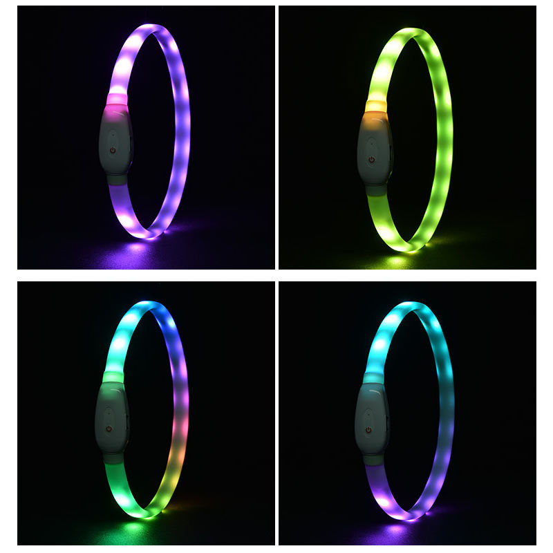 Rubans multicolores LED USB rechargeables à motif solide Rinproof Plastic Dog Night Walking Flashing Light Glow Collar