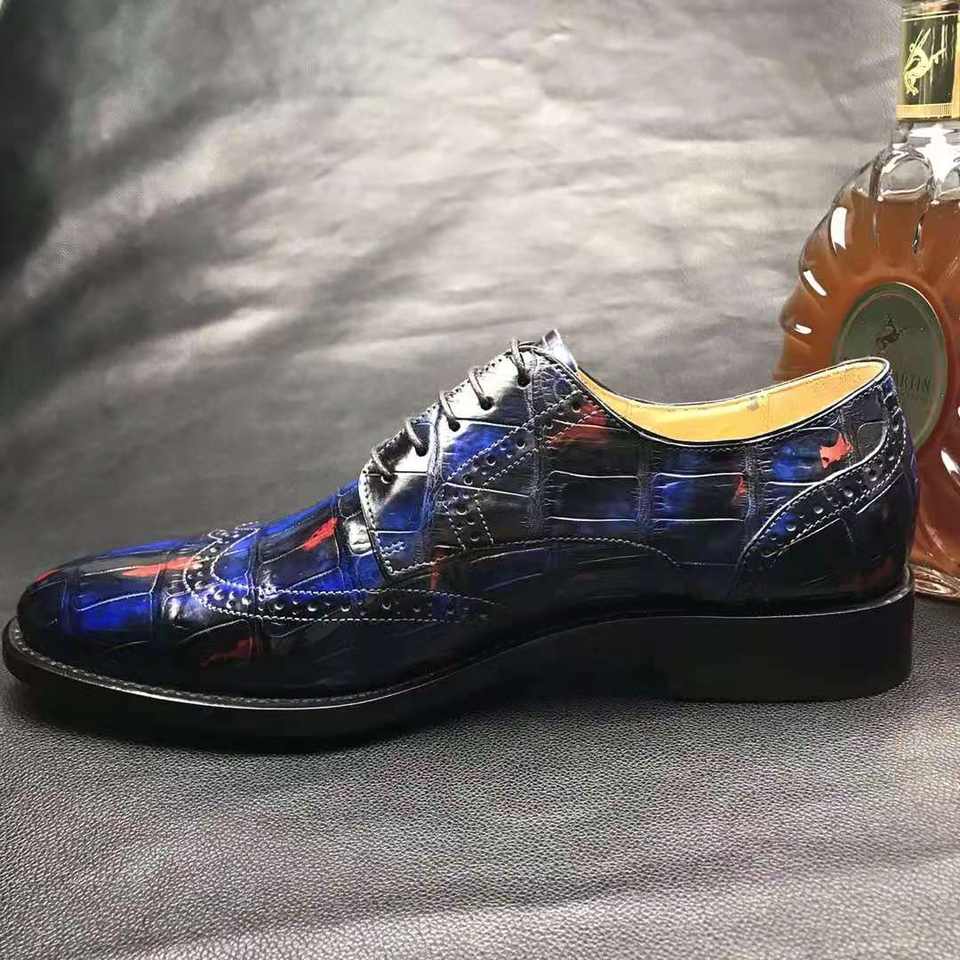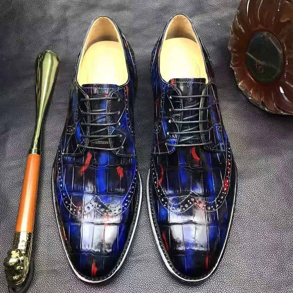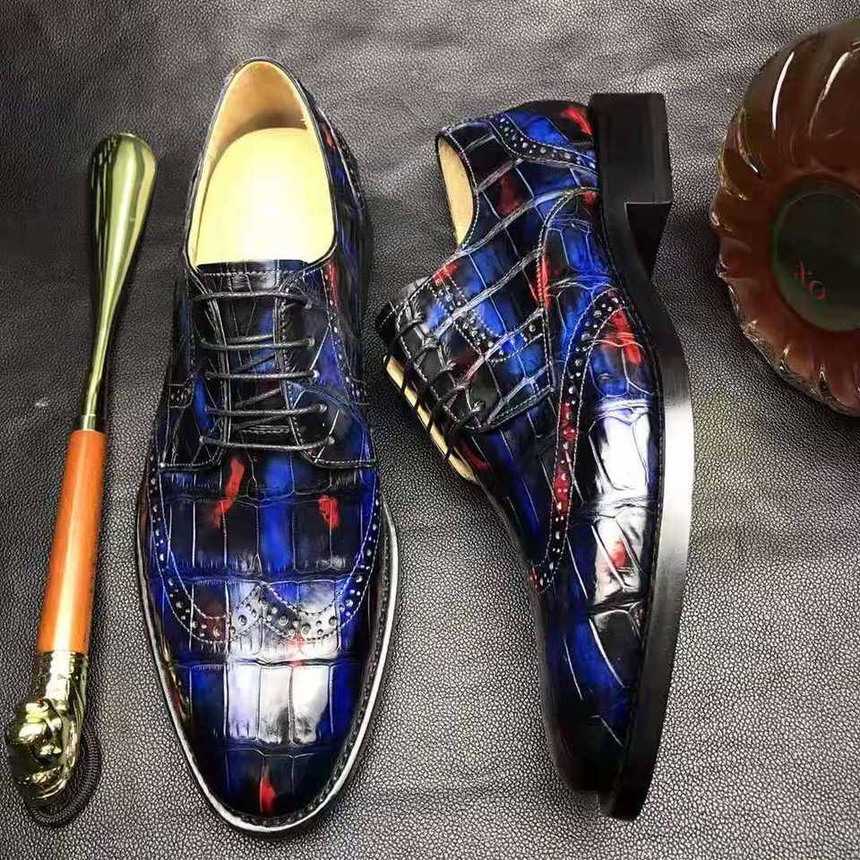 Chaussures de soirée multicolores pour hommes en cuir véritable, style crocodile, chaussures habillées et Richelieu personnalisées, chaussures de soirée classiques en alligator pour hommes