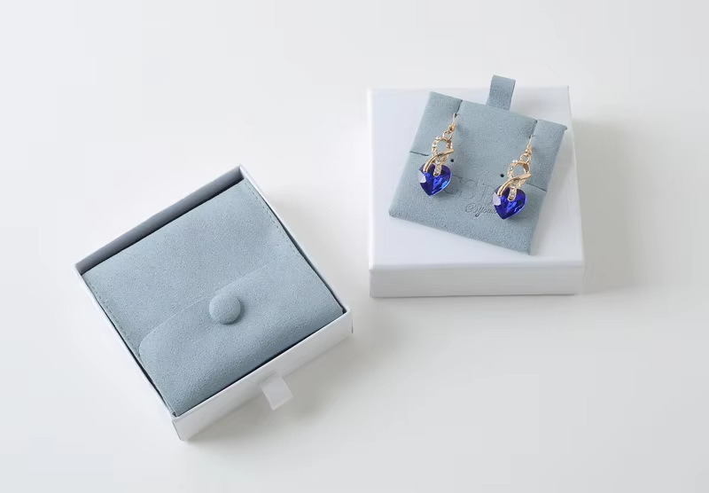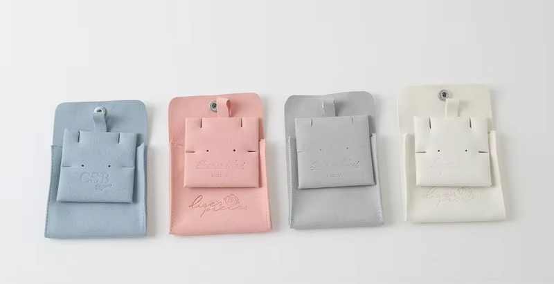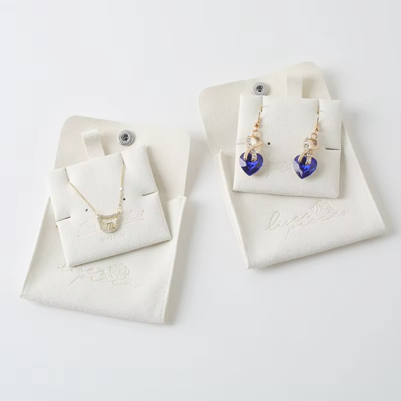 Pochette à bijoux en microfibre multicolore avec bouton-pression, logo personnalisé imprimé, style enveloppe, sac d'emballage plat pour bagues et colliers