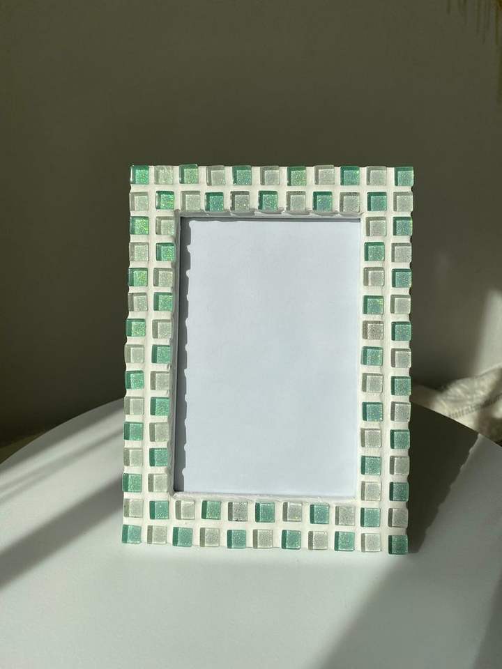 Cadre photo en mosaïque de résine multicolore, design géométrique, fait main, cadre photo de table, décoration d'intérieur, ornement rectangulaire