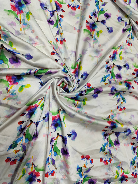 Tissu satiné léger et respirant 100% polyester imprimé multicolore, doux et brillant, pour couture, bricolage, artisanat, décoration de robes de mariée
