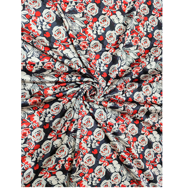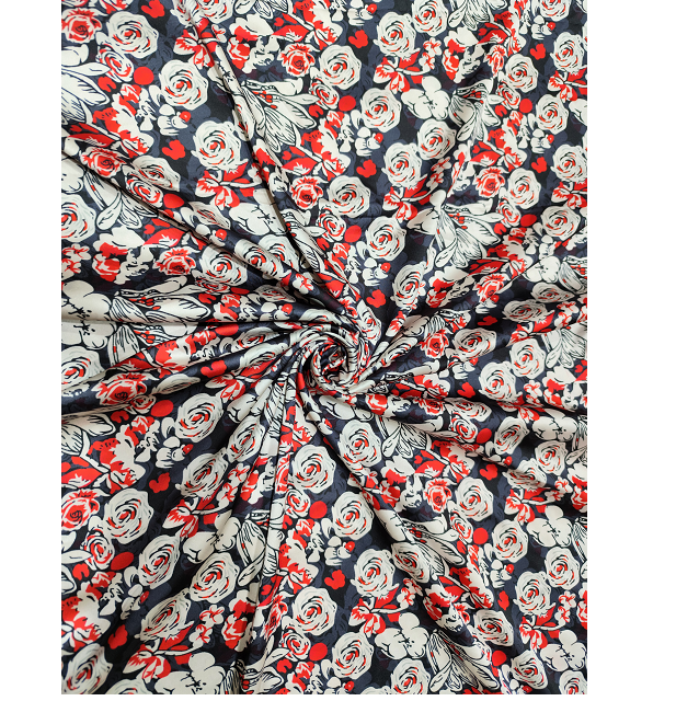 Tissu satiné 100% polyester imprimé multicolore, lisse, doux et brillant pour la couture DIY, l'artisanat, la décoration de robes de mariée