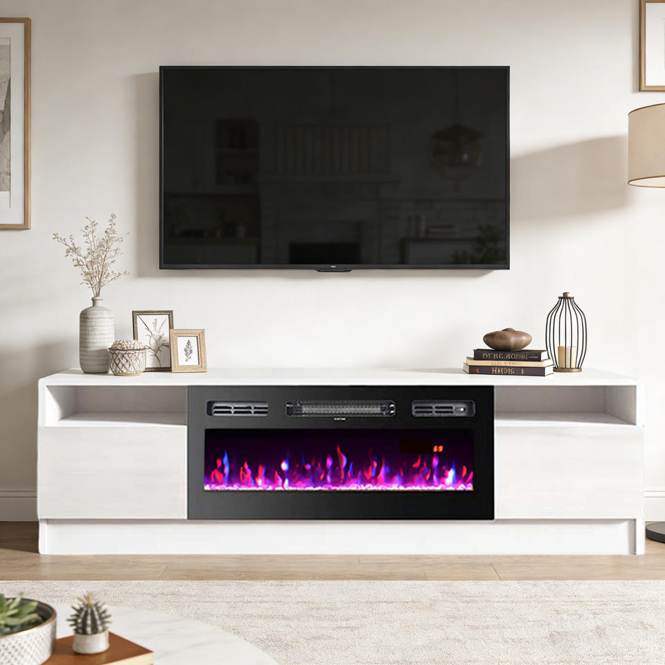 Cheminée électrique moderne de luxe avec effet de flamme réaliste multicolore et support TV pour salon