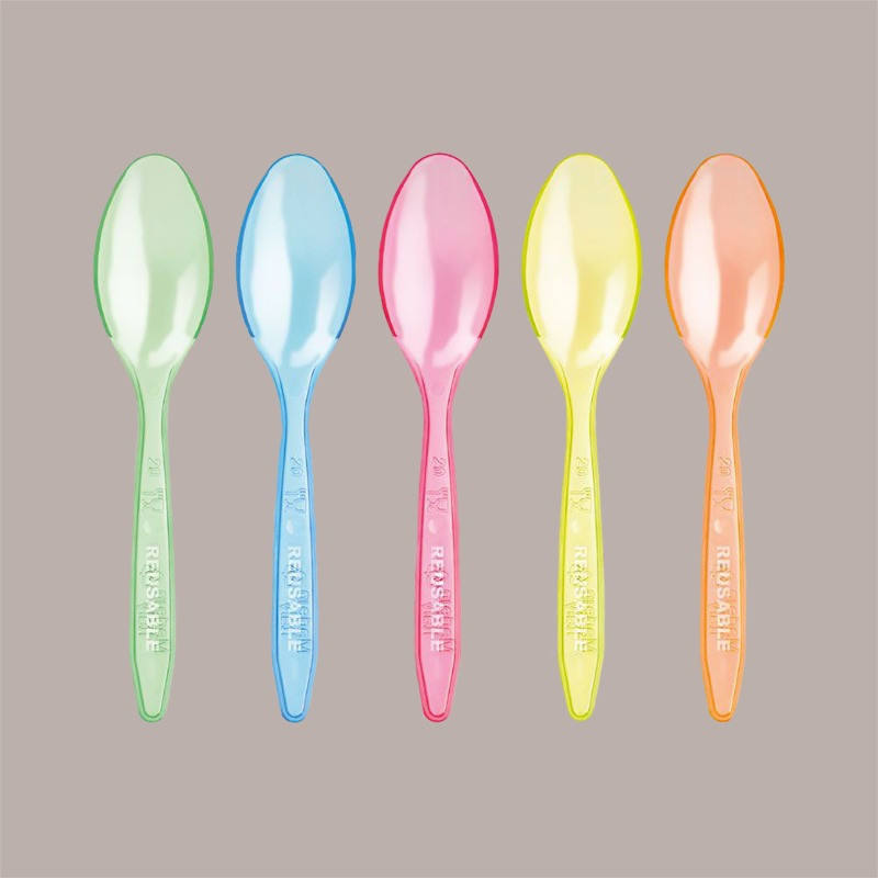 LUCGEL Cuillères en plastique réutilisables multicolores de 13 cm pour bonbons, desserts, glaces et yaourts, 500 pièces