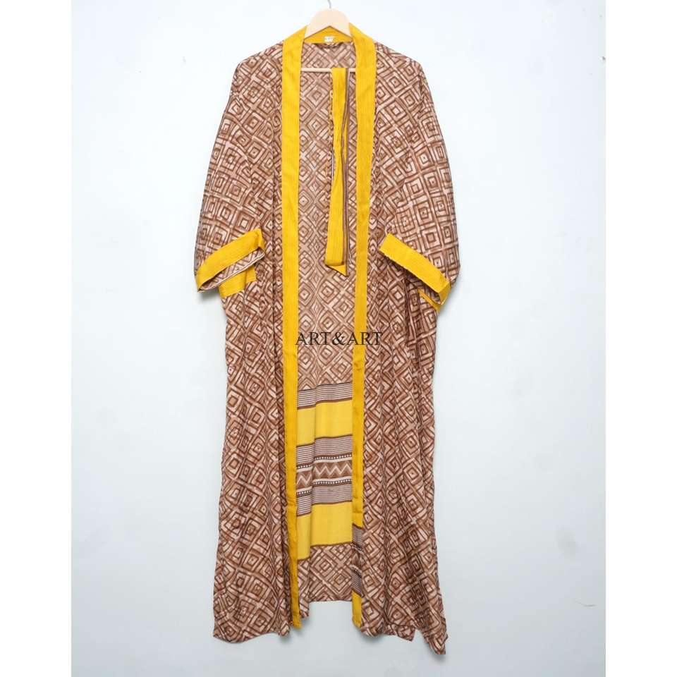 Robe Kimono Modeste Vintage en Soie Satinée Multicolore, Tissu Sari Indien Cousu Main, Tenue d'Intérieur à Manches Longues et Col en V