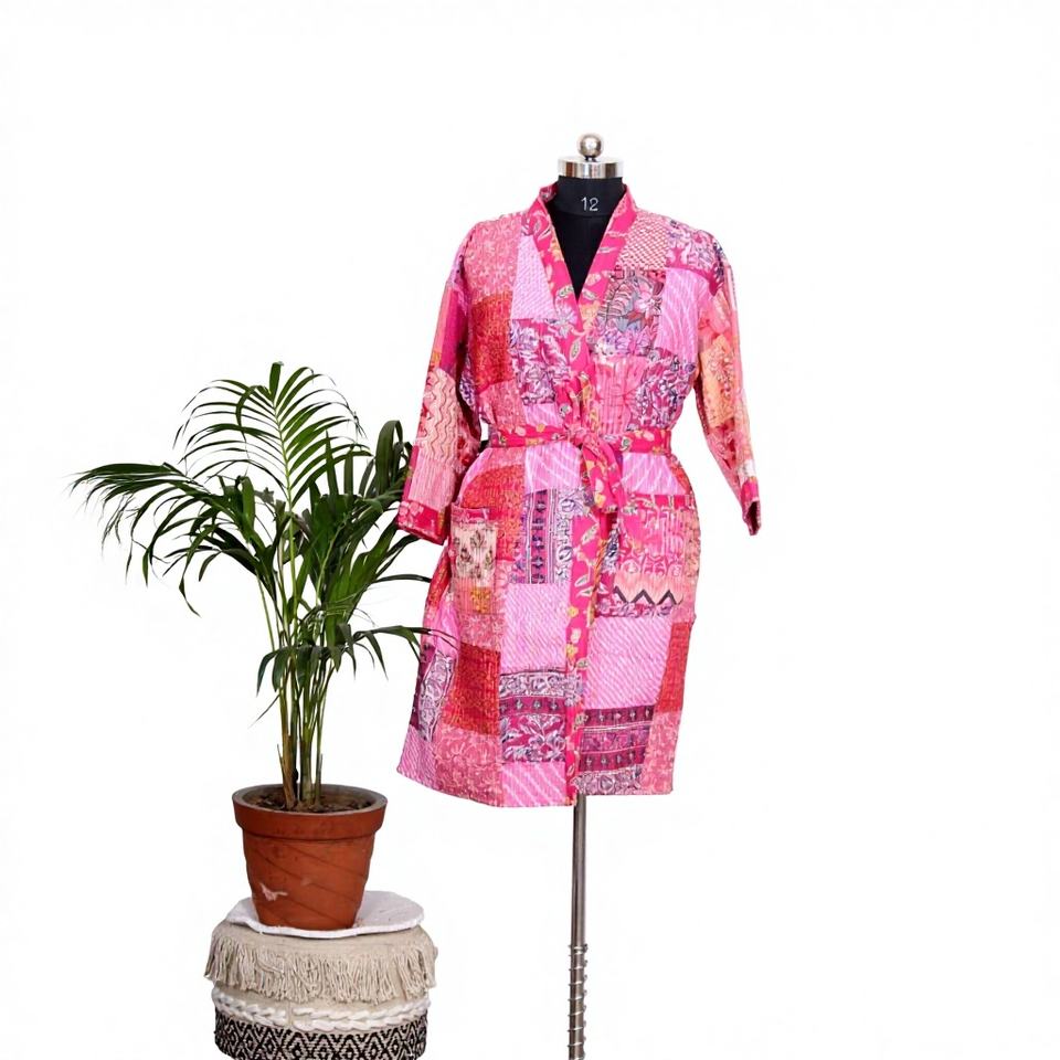 Multicolor Silk Patchwork Handmade Kantha kimono Unique Kantha Robe for Winter Indian Patchwork Kimono Jacket at Factory Price