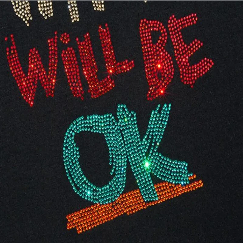 T-shirt multicolore Rhinestones Pullover 400 Gsm T-Shirt Multi Pattern Print Custom Bling Colorful Rhinestone Skull T-shirt