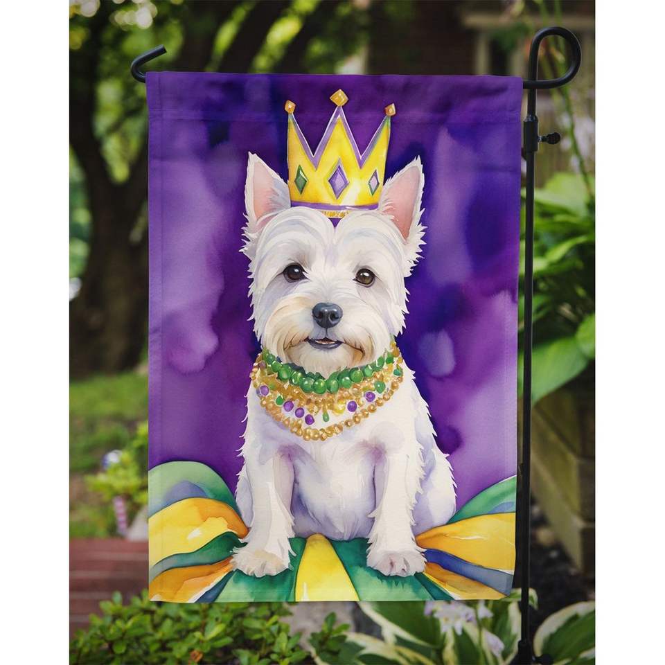 Multicolor Westie King Mardi Gras Garden Flag Decorative Mailbox Yard Banner for Patio Artwork & Flower Beds for Outdoor Decor