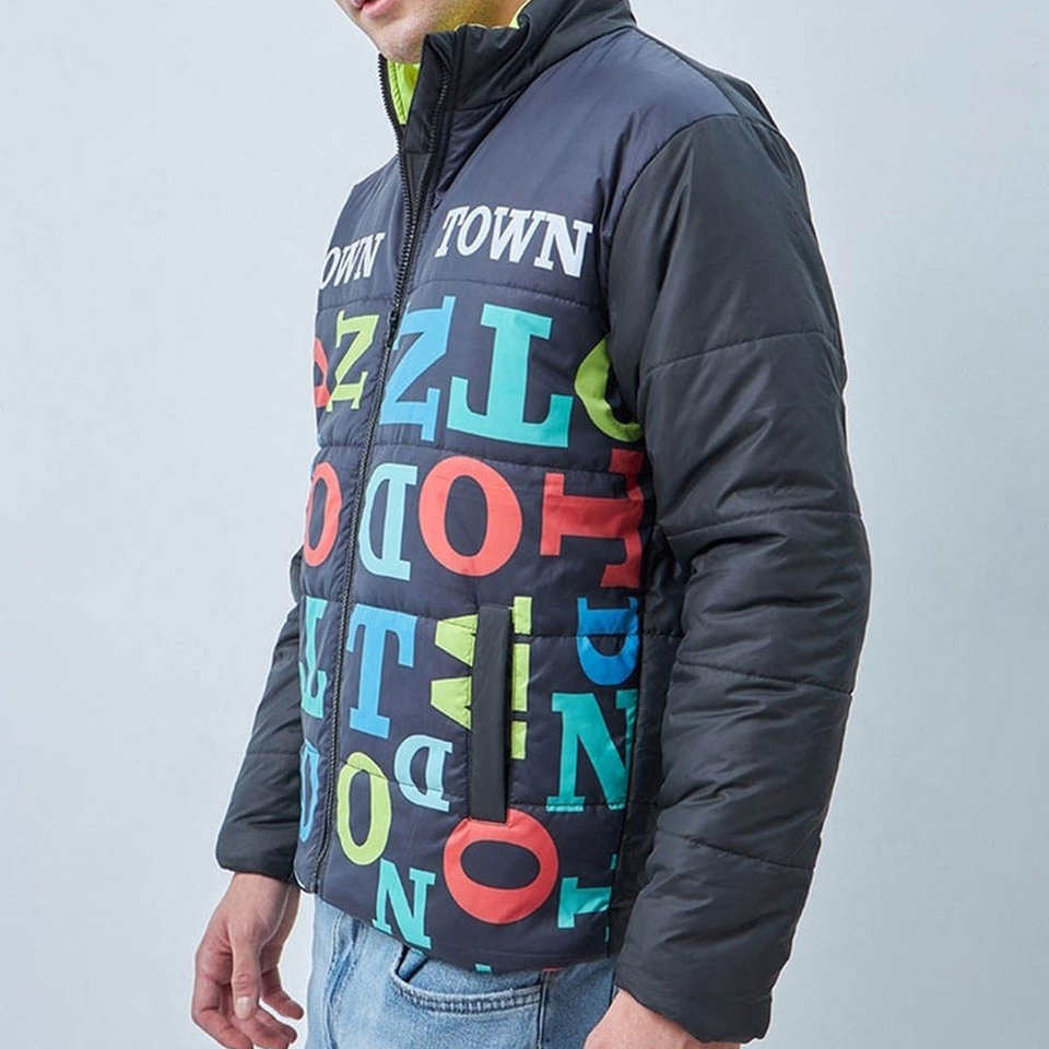Veste matelassée à capuche multicolore avec imprimé lettres pour homme, chaude, légère, d'hiver, élégante, fermeture éclair sur le devant, décontractée, imperméable
