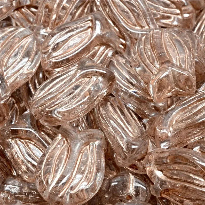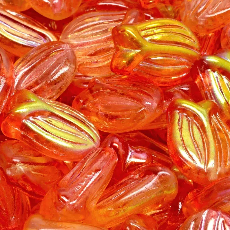 Multicolored 12x8mm Tulip Bud Pressed Czech Glass Beads for Jewelry Making