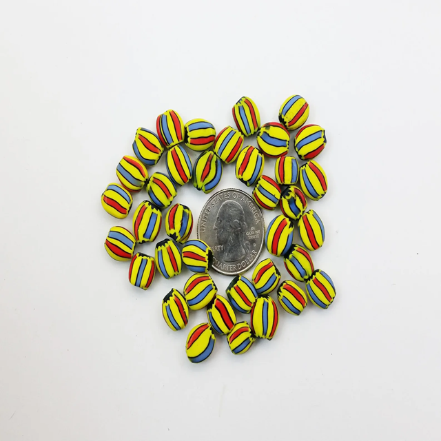 Perles ovales à motif tribal multicolore Chevron Melon Fabriquées à la main en cristal vintage Verre au chalumeau Fabrication de bijoux en gros PERLES