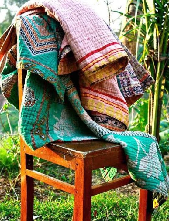 Couverture multicolore cousue à la main Bangali Kantha Quilt, Couvre-lit Antique Kantha Bedding, Boho Kantha Quilts