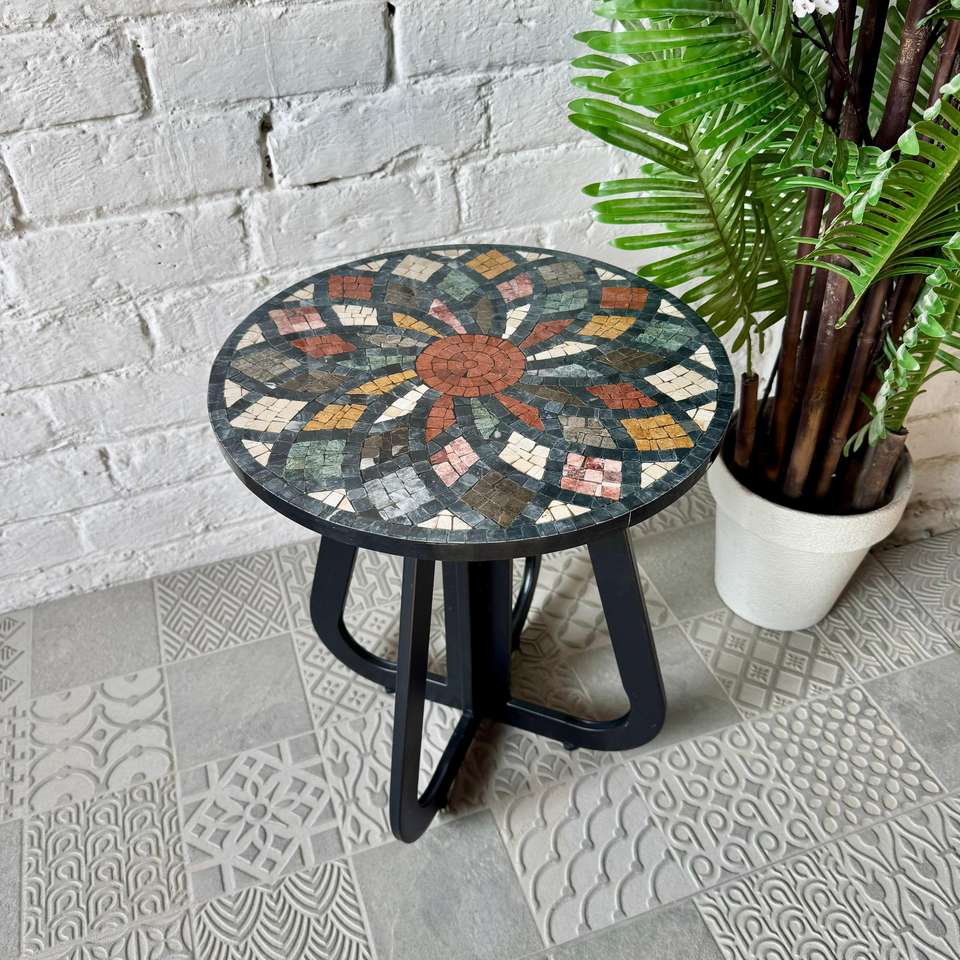 Table basse moderne en mosaïque de pierre multicolore ronde, convertible, base en tige de fer solide, personnalisable pour la décoration de salon de luxe