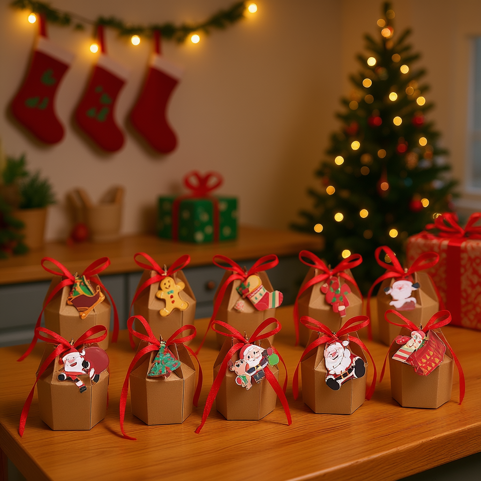 Boîtes cadeaux de Noël multicolores à motifs de Père Noël et bonhomme de neige, rubans en papier, cartes, friandises, cadeaux de fête, 24 pièces