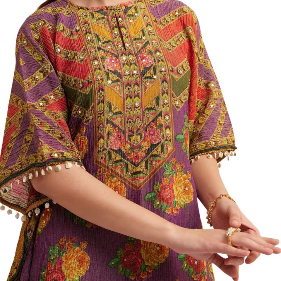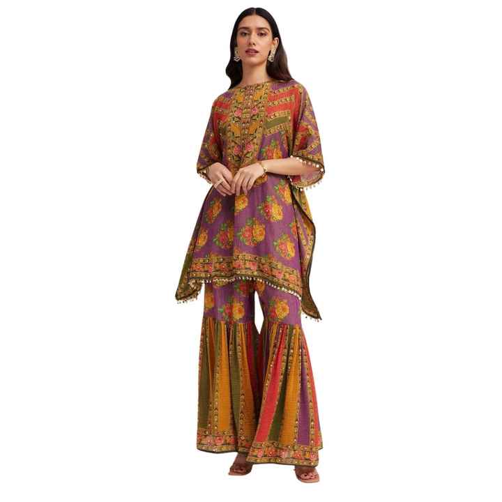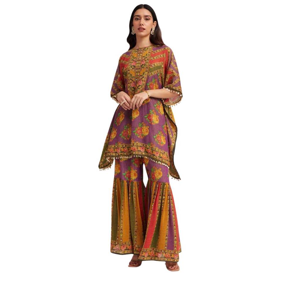 Ensemble Sharara multicolore imprimé en tissu pour réception de fête de mariage et célébrations culturelles traditionnelles