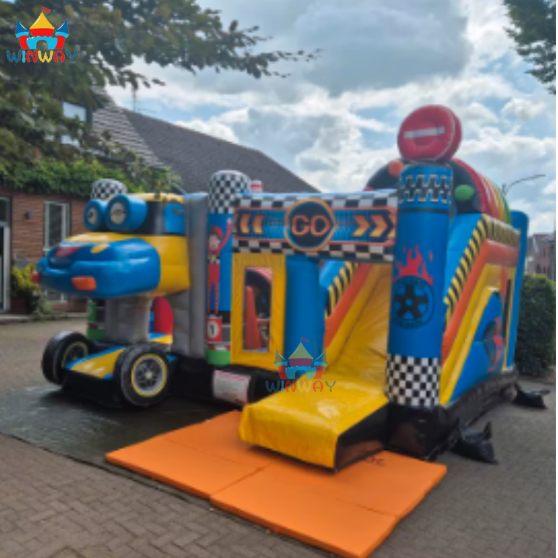 Château gonflable multifonctionnel sur le thème des voitures de course, combo et gonflables avec matériau en PVC, installation facile, capacité maximale de 5 à 10 personnes, en vente