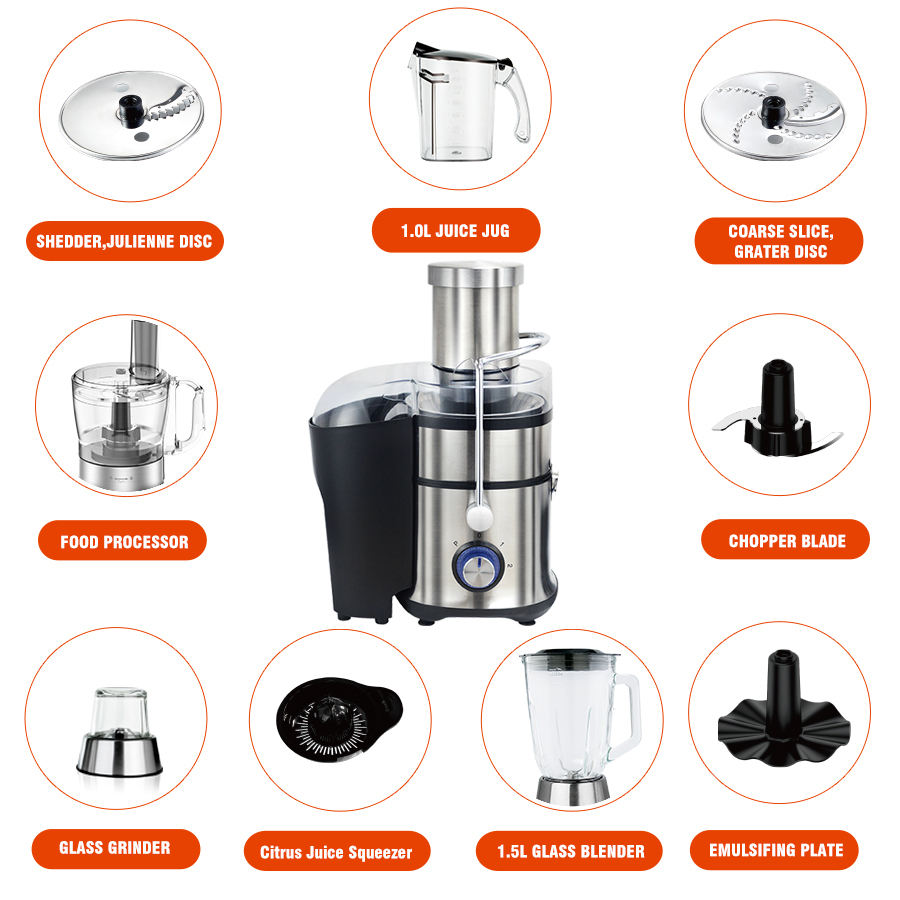 Machine à jus centrifuge à froid multifonction 11 en 1 en acier inoxydable Extracteur de jus avec broyeur alimentaire et mixeur à smoothie