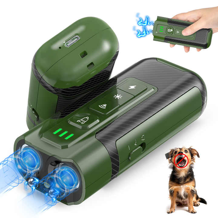 Répulsif Multifonctionnel 4 Modes pour Chien avec Choc Électrique, Auto-Défense, Ultrasons et Lampe Torche LED