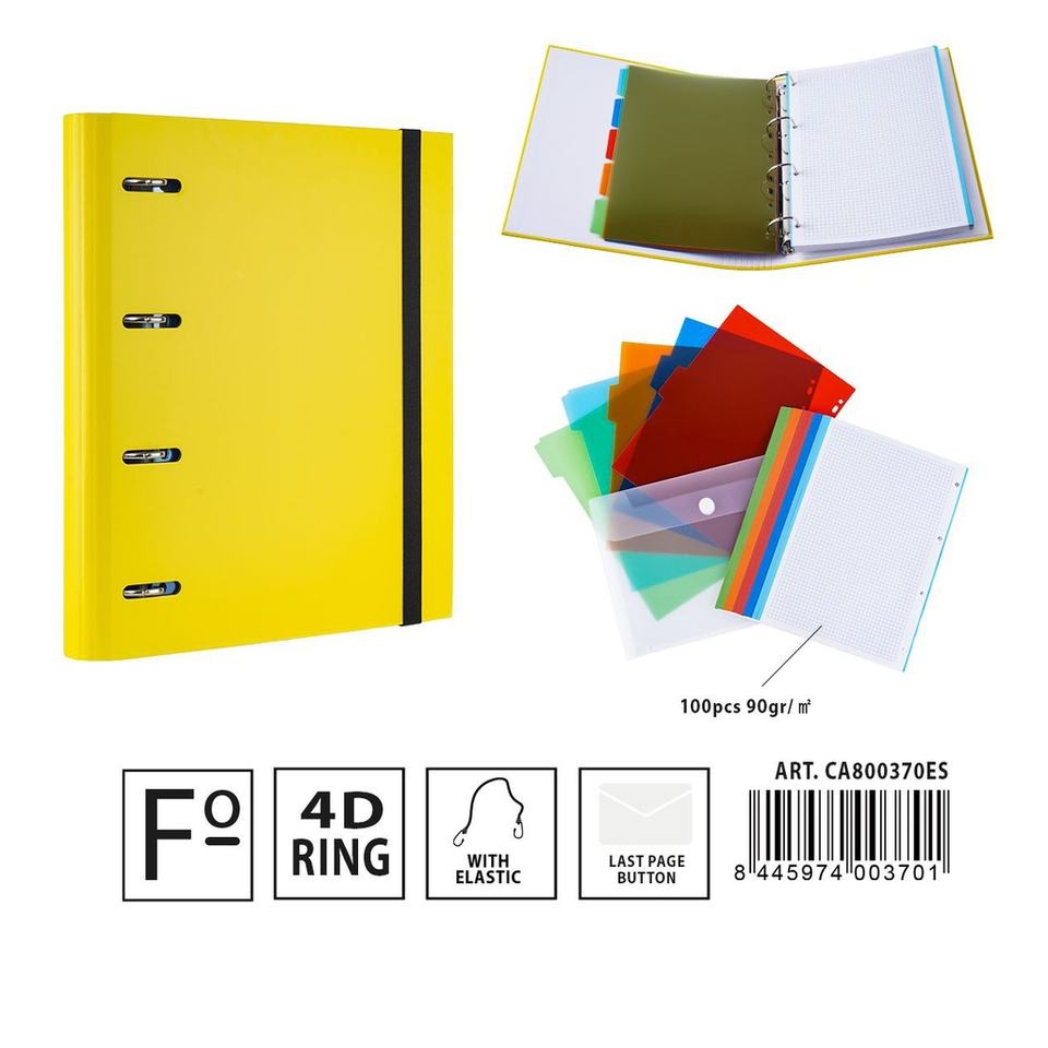 Classeur multifonction 4 anneaux D4 28x4x32 cm jaune-Fournitures de bureau et documents