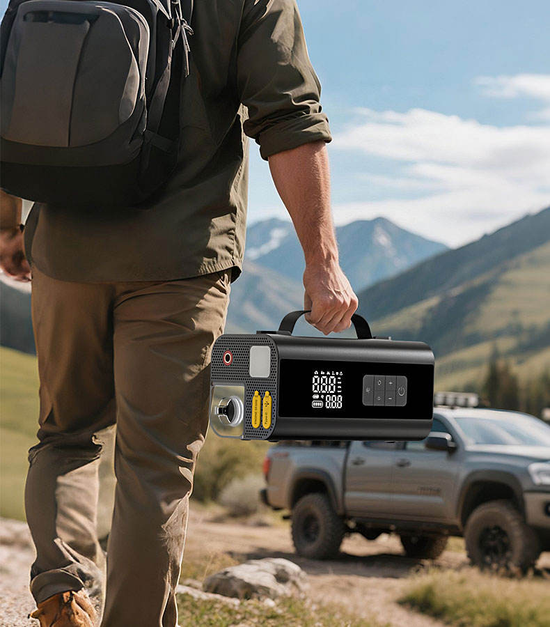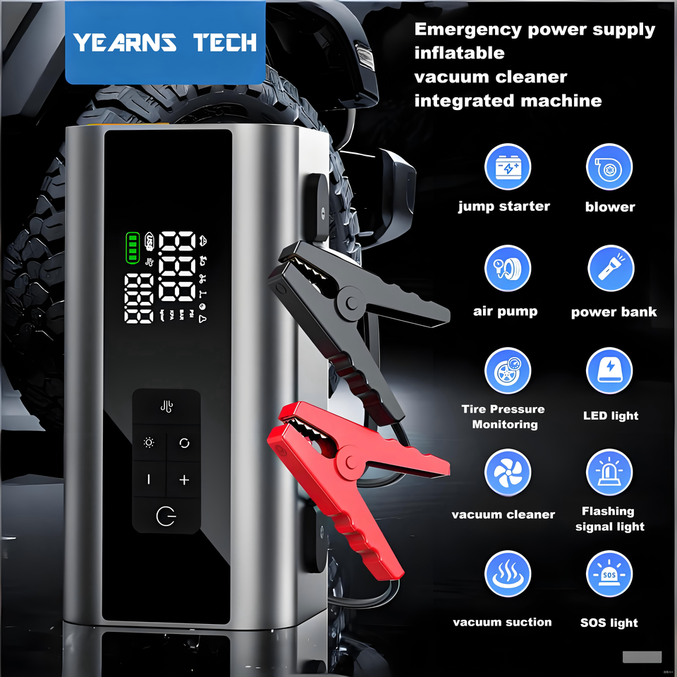 Démarreur de voiture multifonction 8 en 1, pompe à air, gonfleur de pneus, batterie externe portable, lumière LED SOS, booster d'urgence pour véhicules