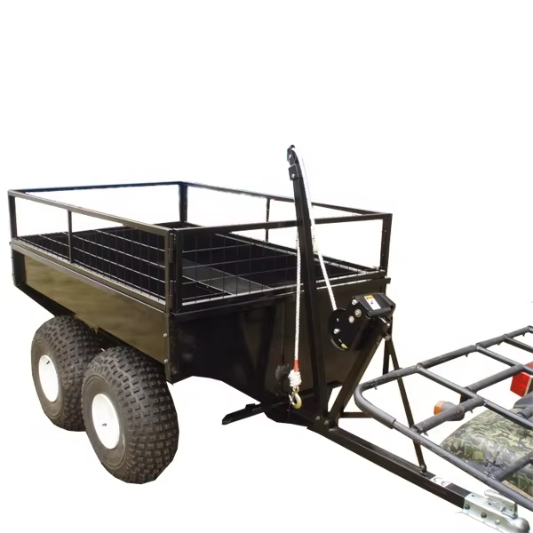 Remorque multifonction pour VTT Remorque tout-terrain Remorque robuste pour VTT Remorque en bois pour usage agricole
