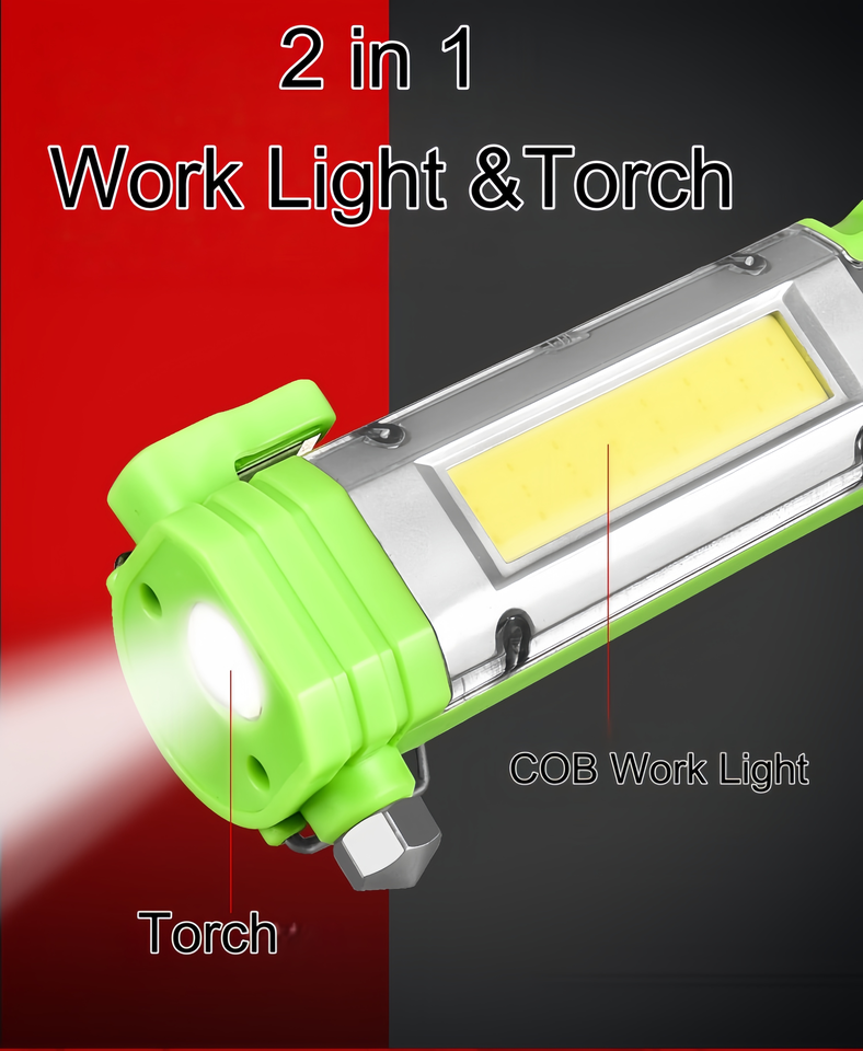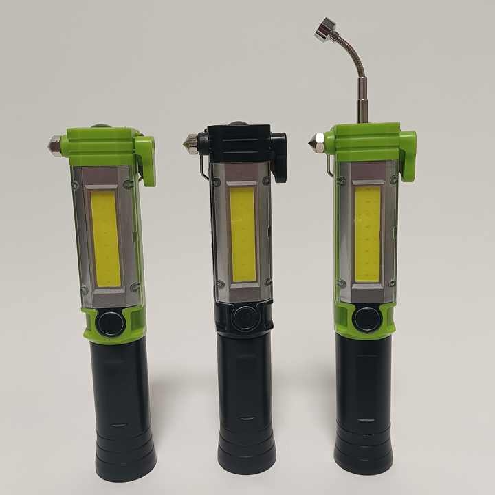Lampe de travail multifonctionnelle COB avec aimant Marteau de sécurité étanche pour réparation automobile Lampe de poche d'urgence à LED Cutter télescopique