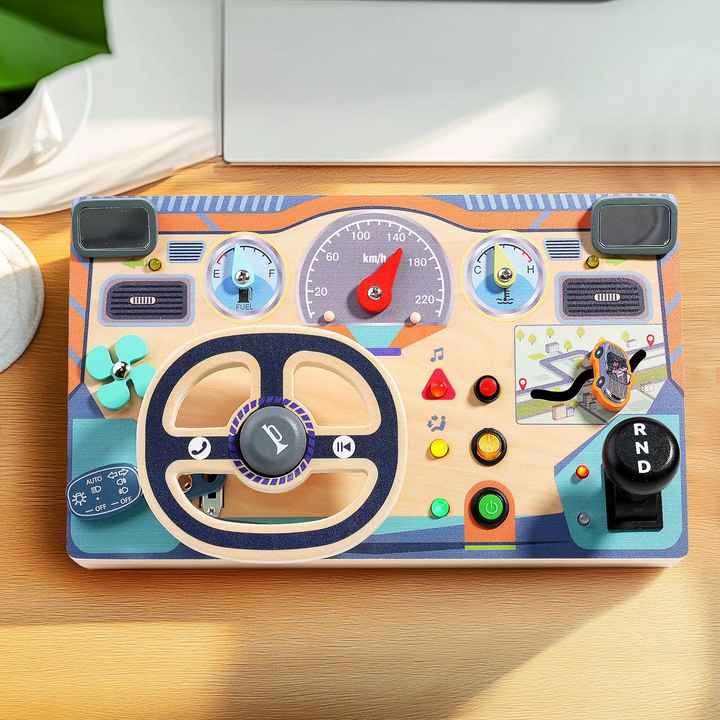 Planche de pilotage électronique multifonctionnelle Baby Sensory Analog Steering Wheel Circuit Montessori Toys LED Light Educational Wooden Toys