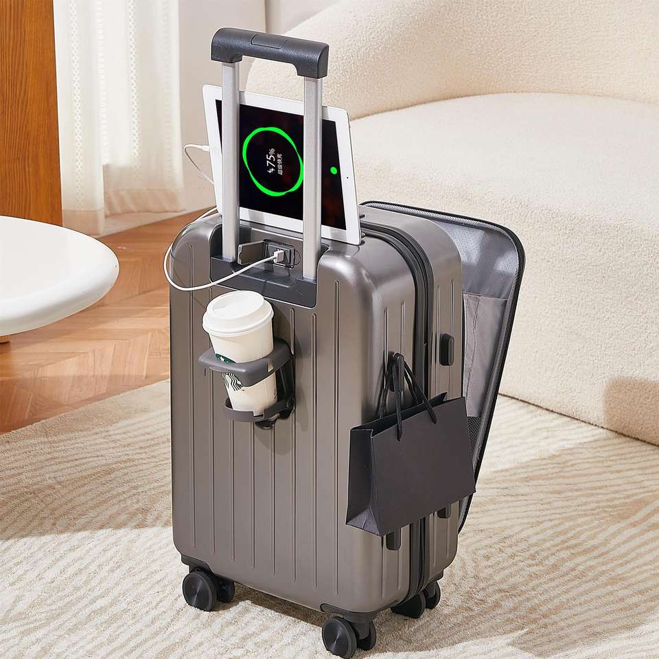 Bagage Multifonction à Ouverture Frontale avec Compartiment Ordinateur, Bagage Cabine, Sacs de Voyage avec Porte-Gobelet, Chargeur USB et Valise Chariot