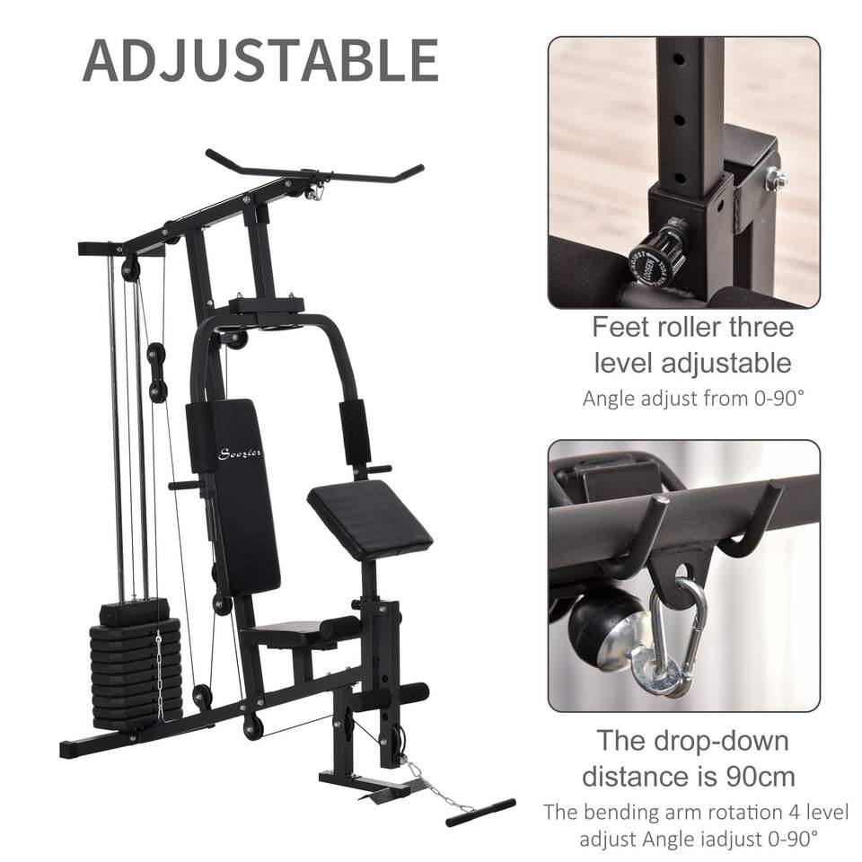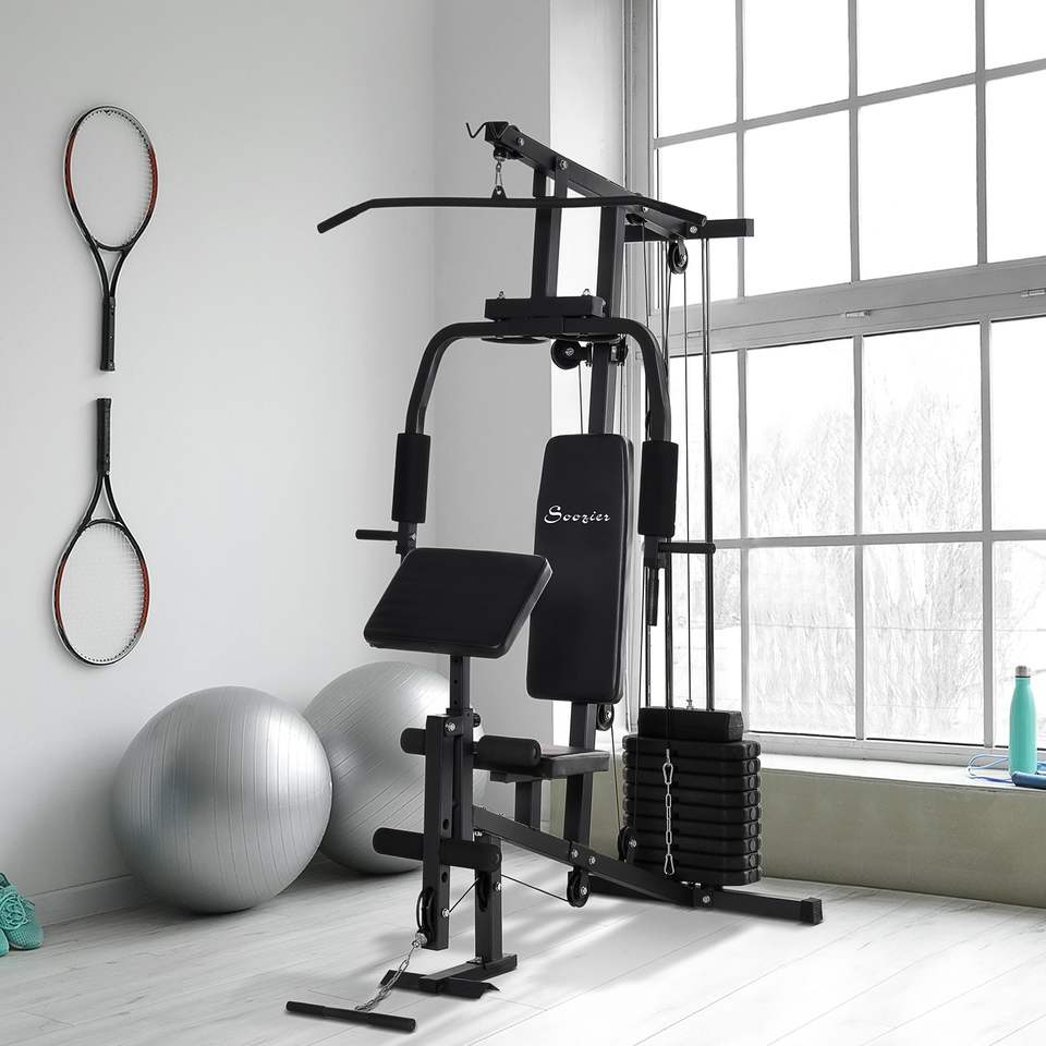 Station de musculation multifonctionnelle pour la maison, hub d'exercices complet - 58,25 L x 42,5 W x 81,5 H, banc de musculation noir