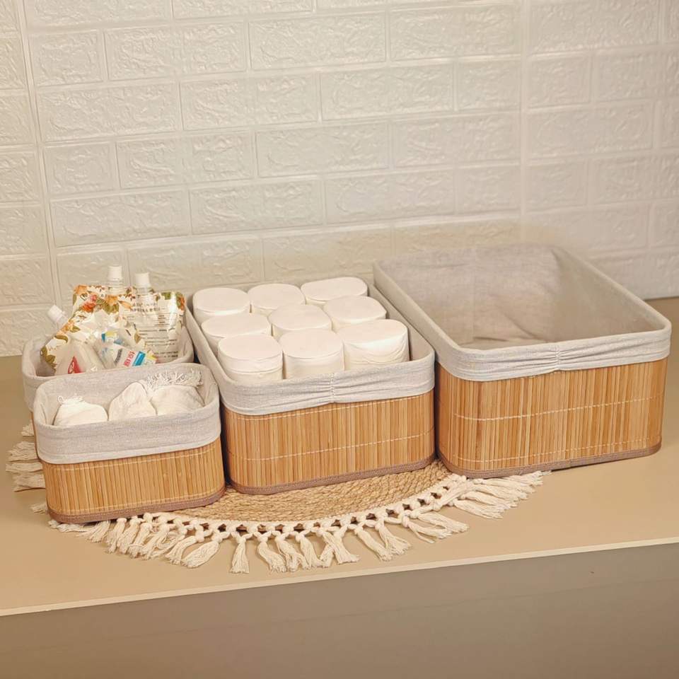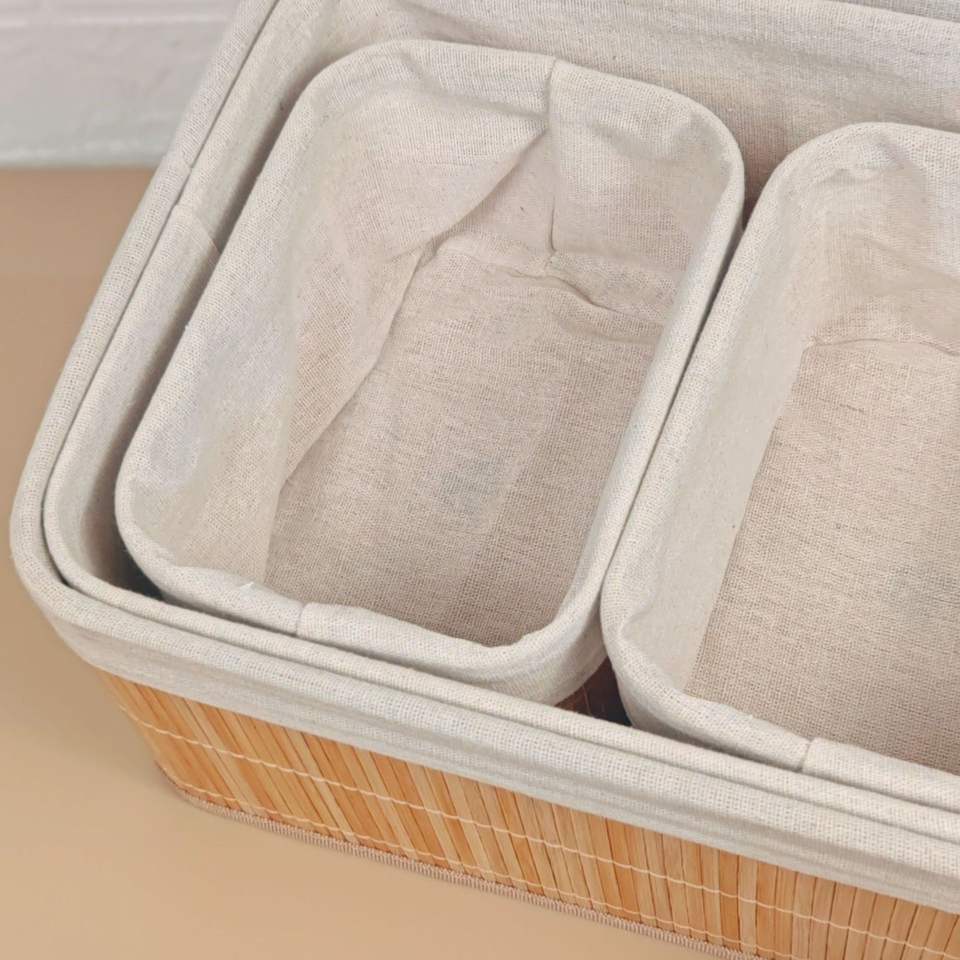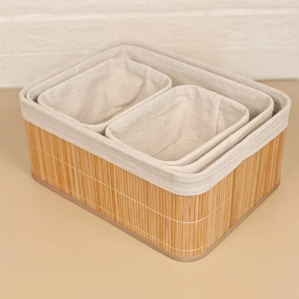 Panier de rangement multifonctionnel 3pcs en bambou naturel tissé pour snacks