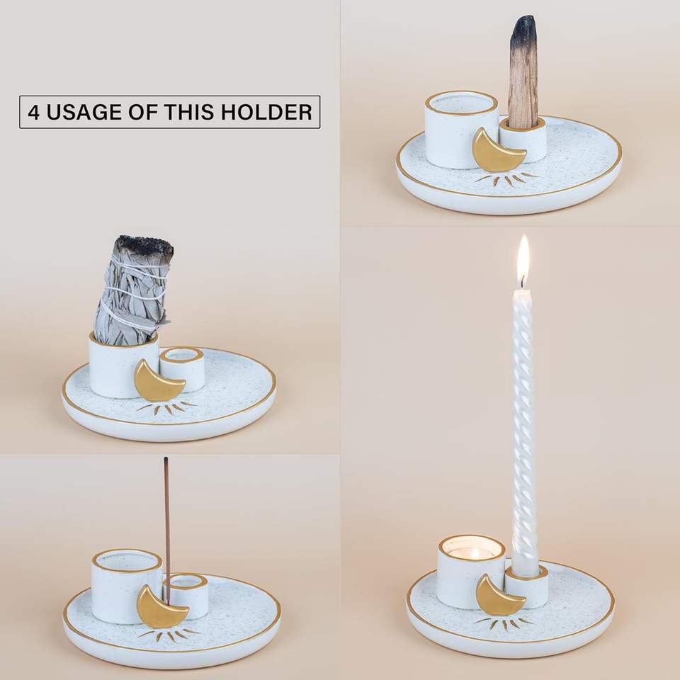 Porte-encens et bougeoir multifonctions pour brûler la sauge, le palo santo, les bâtons d'encens-Plateau attrape-cendres en céramique de 5.9 "pour.