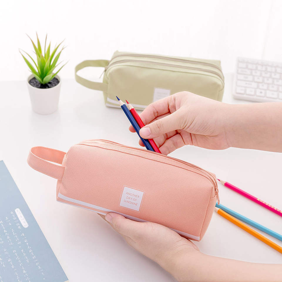 Sac à crayons en toile multifonction grande capacité, boîte à crayons portable, double fermeture éclair, trousse à crayons pour étudiants