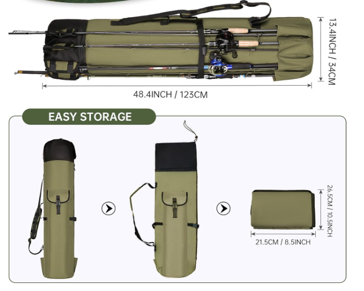 Étui multifonctionnel pour canne à pêche en polyester imperméable de grande capacité pouvant contenir 5 pôles 10L