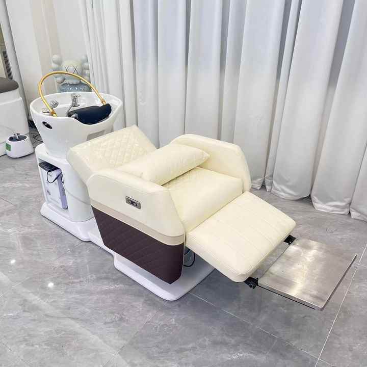 Fauteuil de lavage multifonctionnel électrique inclinable pour salon de coiffure avec bac intégré pour massage et soin capillaire