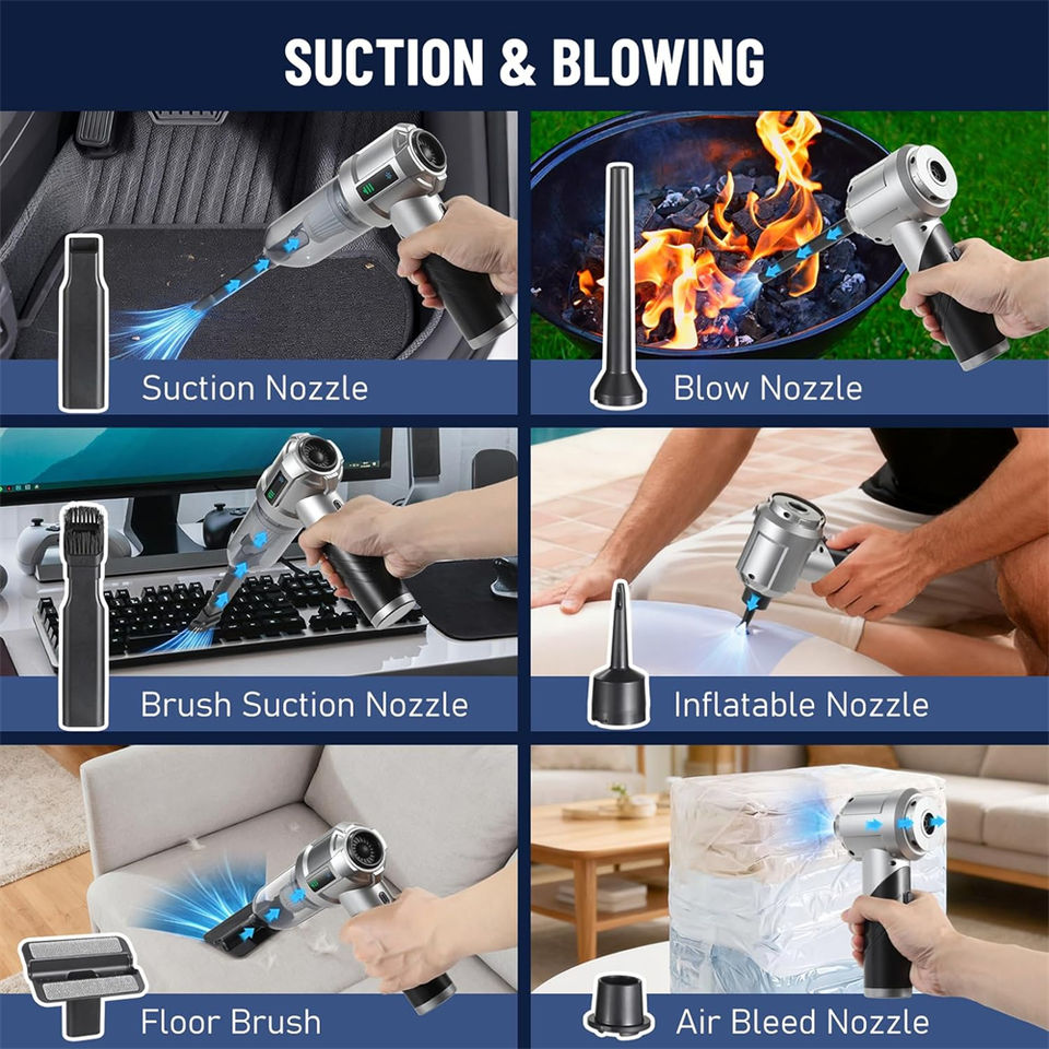Souffleur d'air sans fil multifonction 16000Pa Puissance d'aspiration puissante Aspirateur portable sans fil à main pour la maison et la voiture Matériel ABS