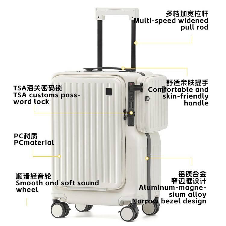 Valise multifonctionnelle de 20 pouces avec poignée télescopique, ouverture latérale, serrure à combinaison, bagage de voyage unisexe