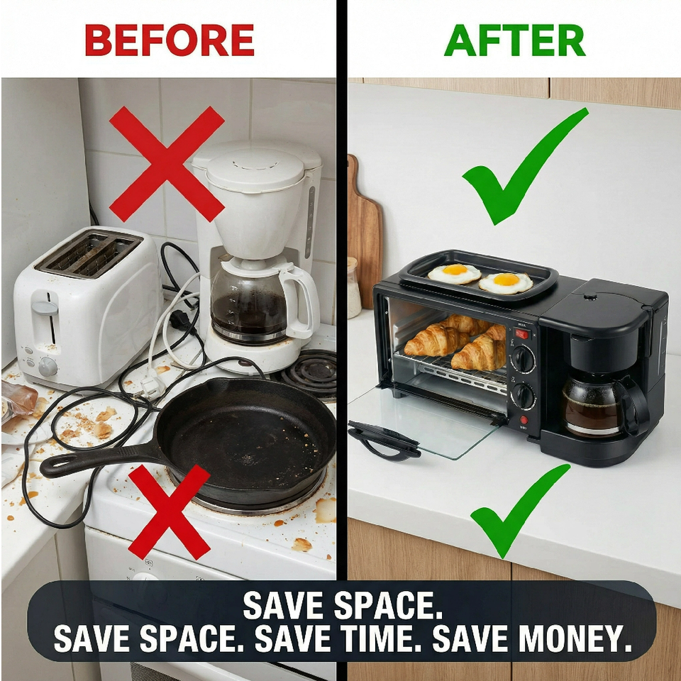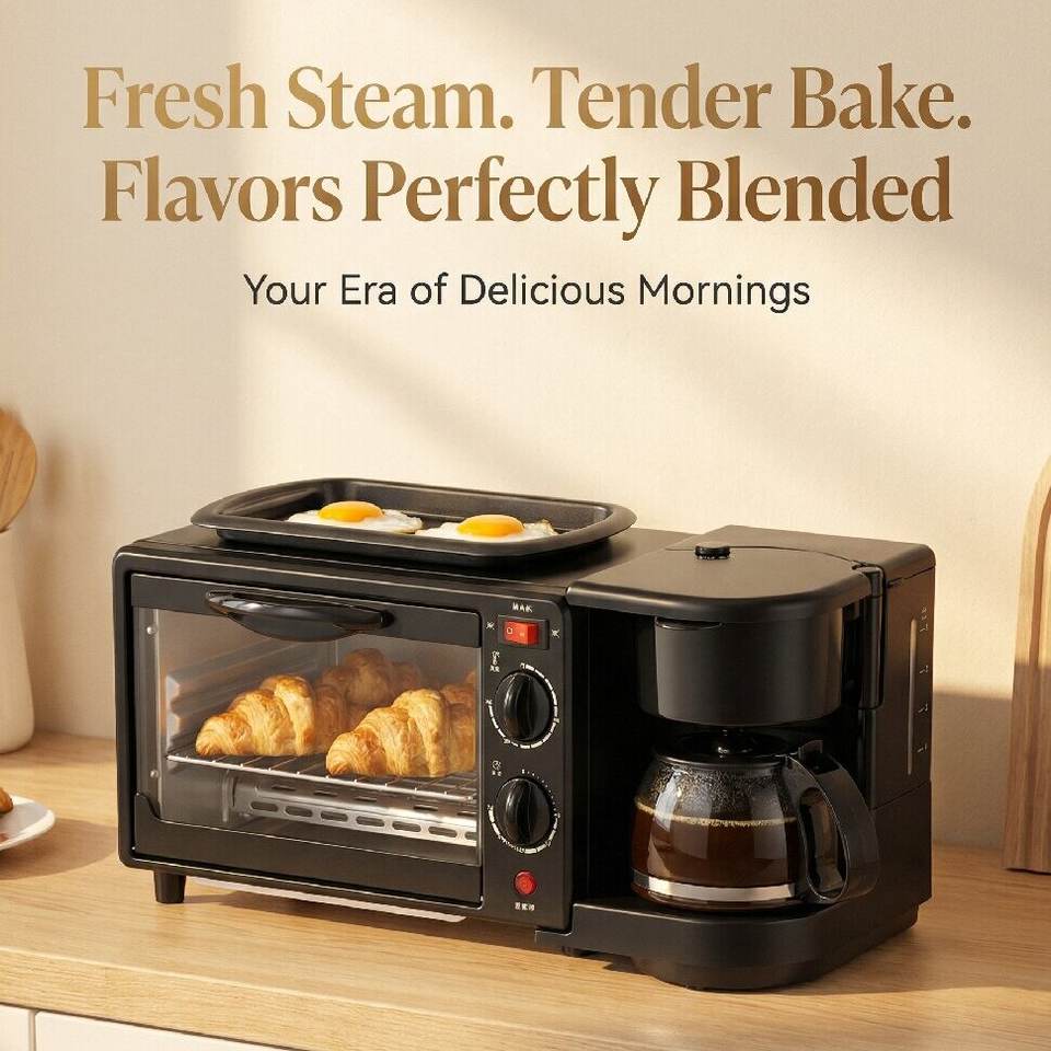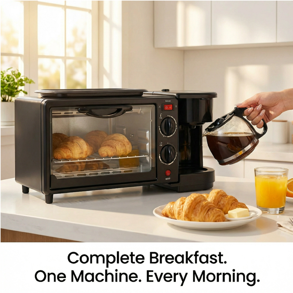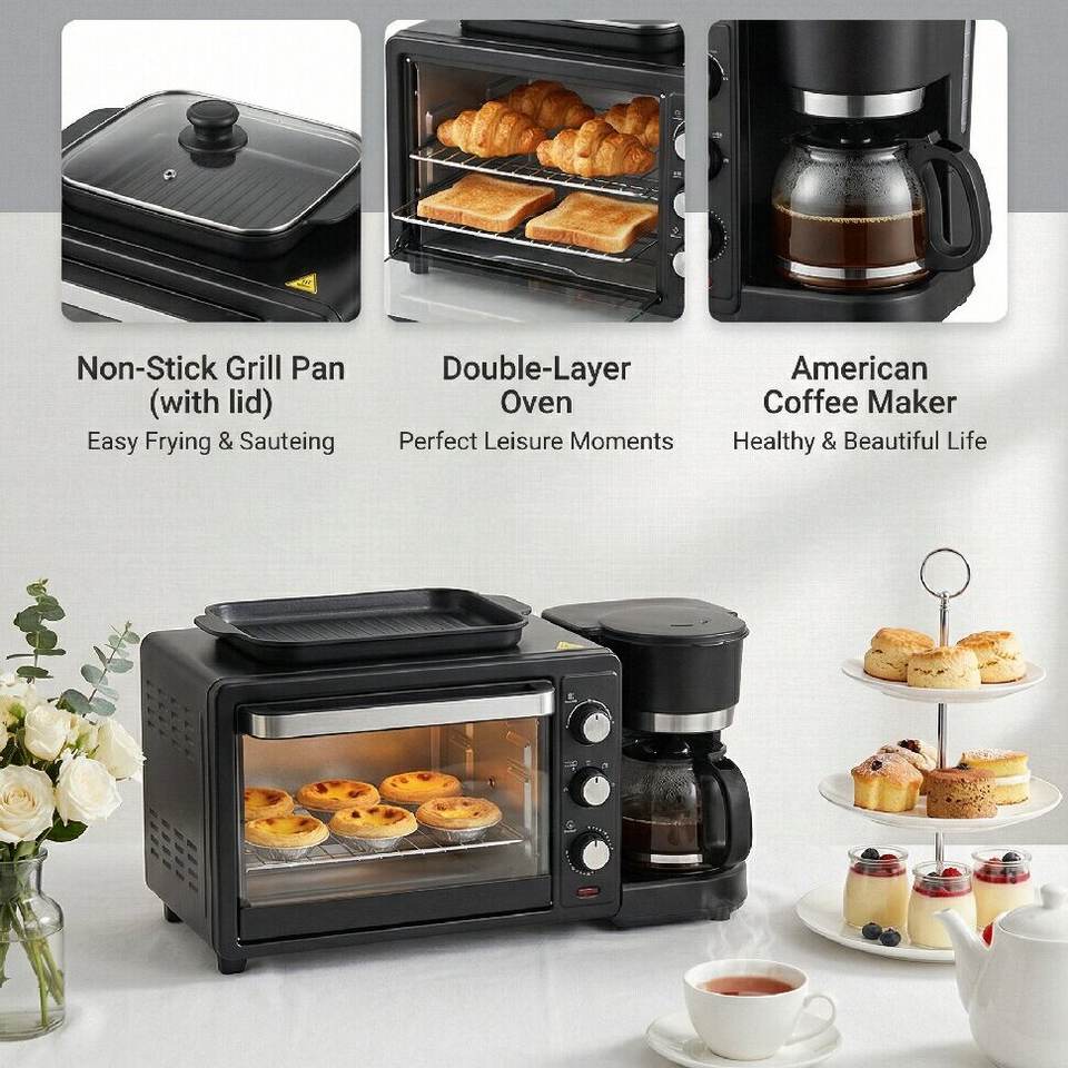 Station petit-déjeuner multifonctionnelle 3-en-1 : Four grille-pain électrique, cafetière et plancha