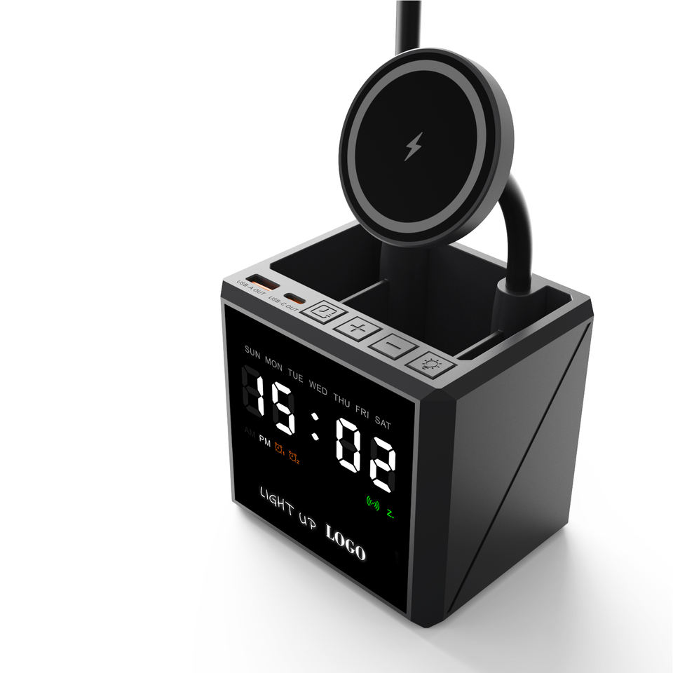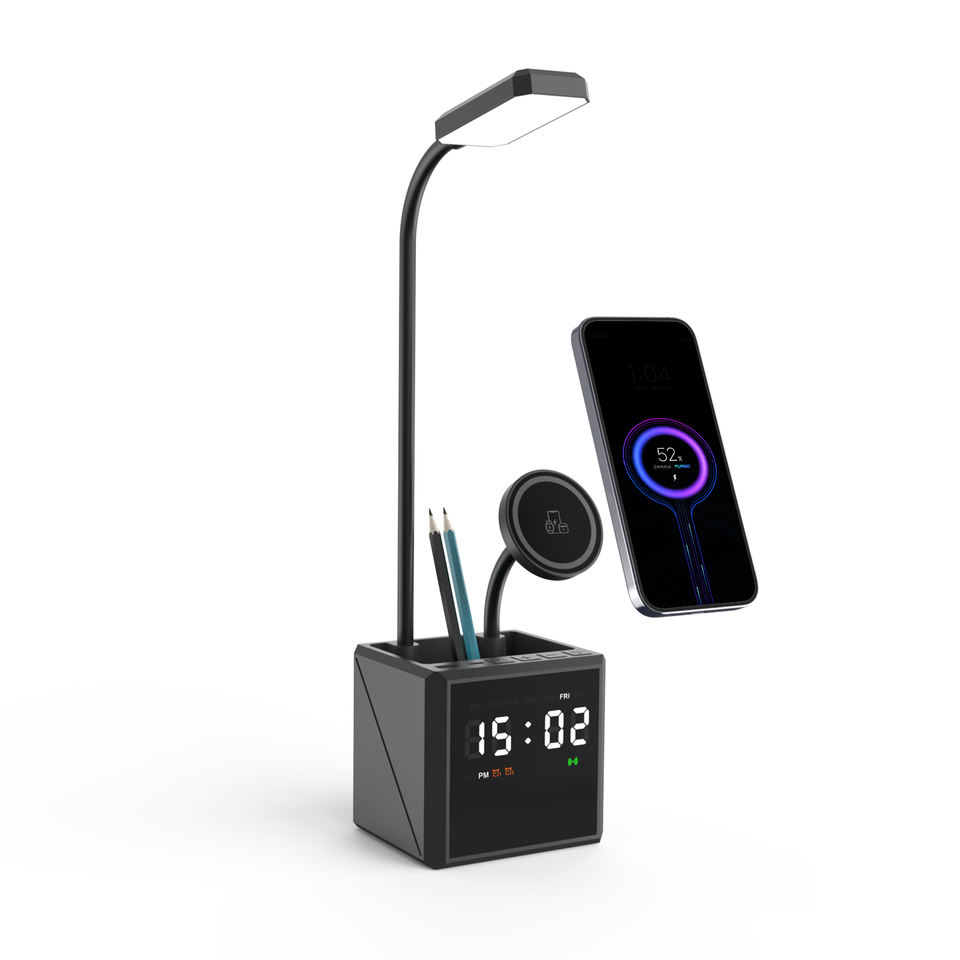 Réveil / Pot à crayons / Lampe de bureau / Sortie Type-C et USB